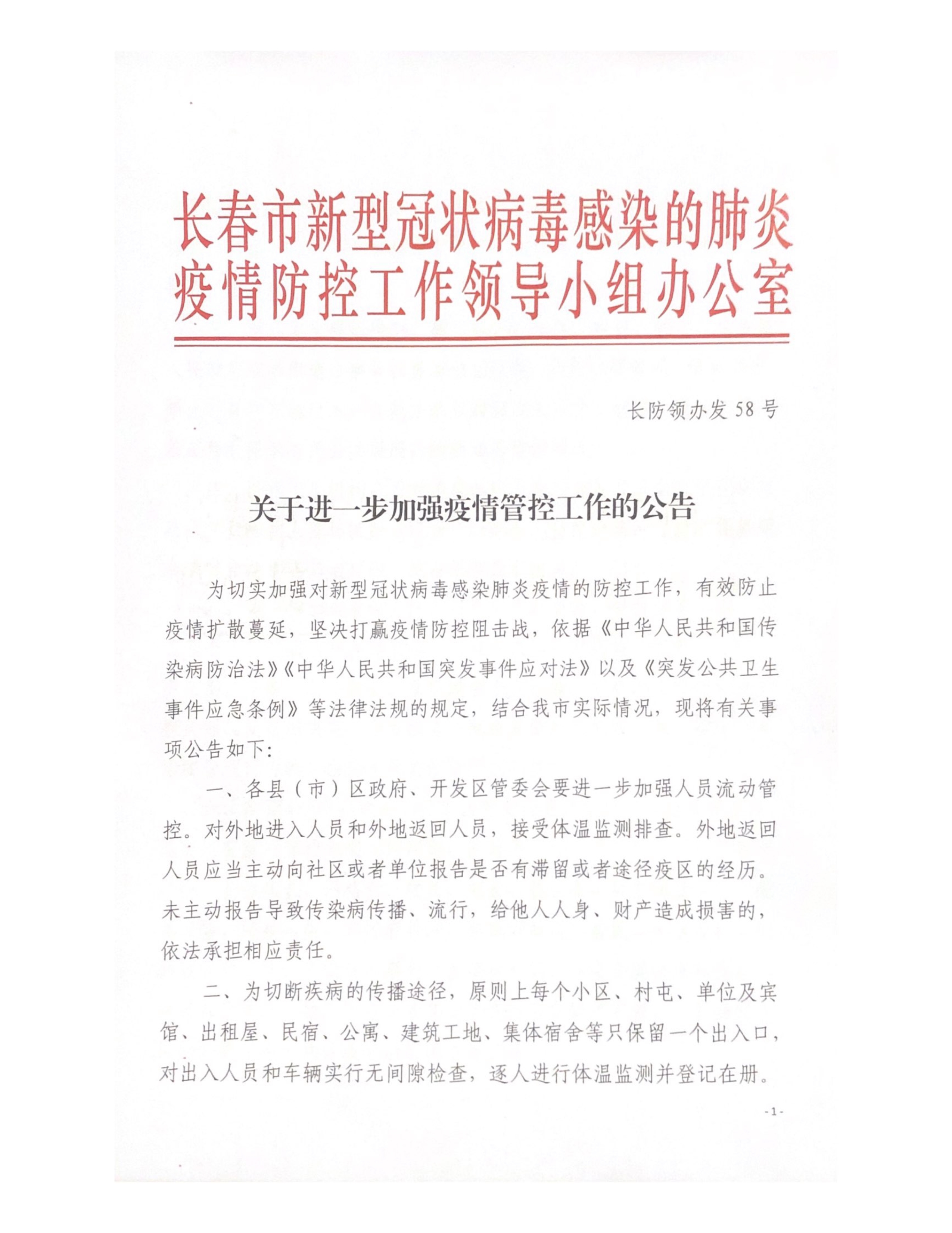 关于进一步加强疫情防控工作的公告