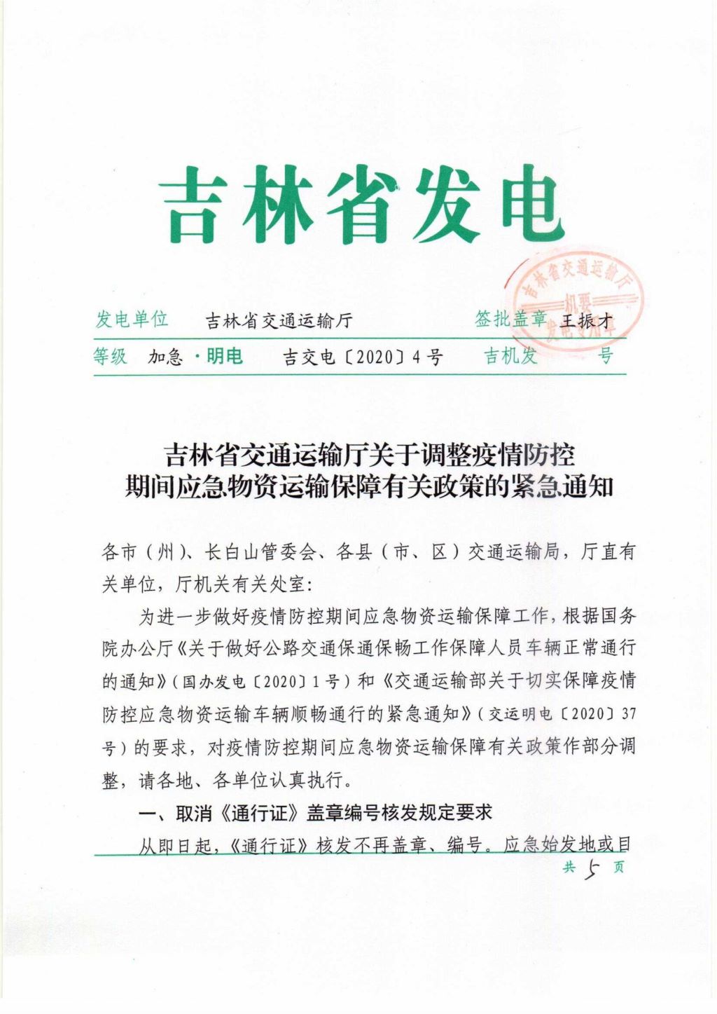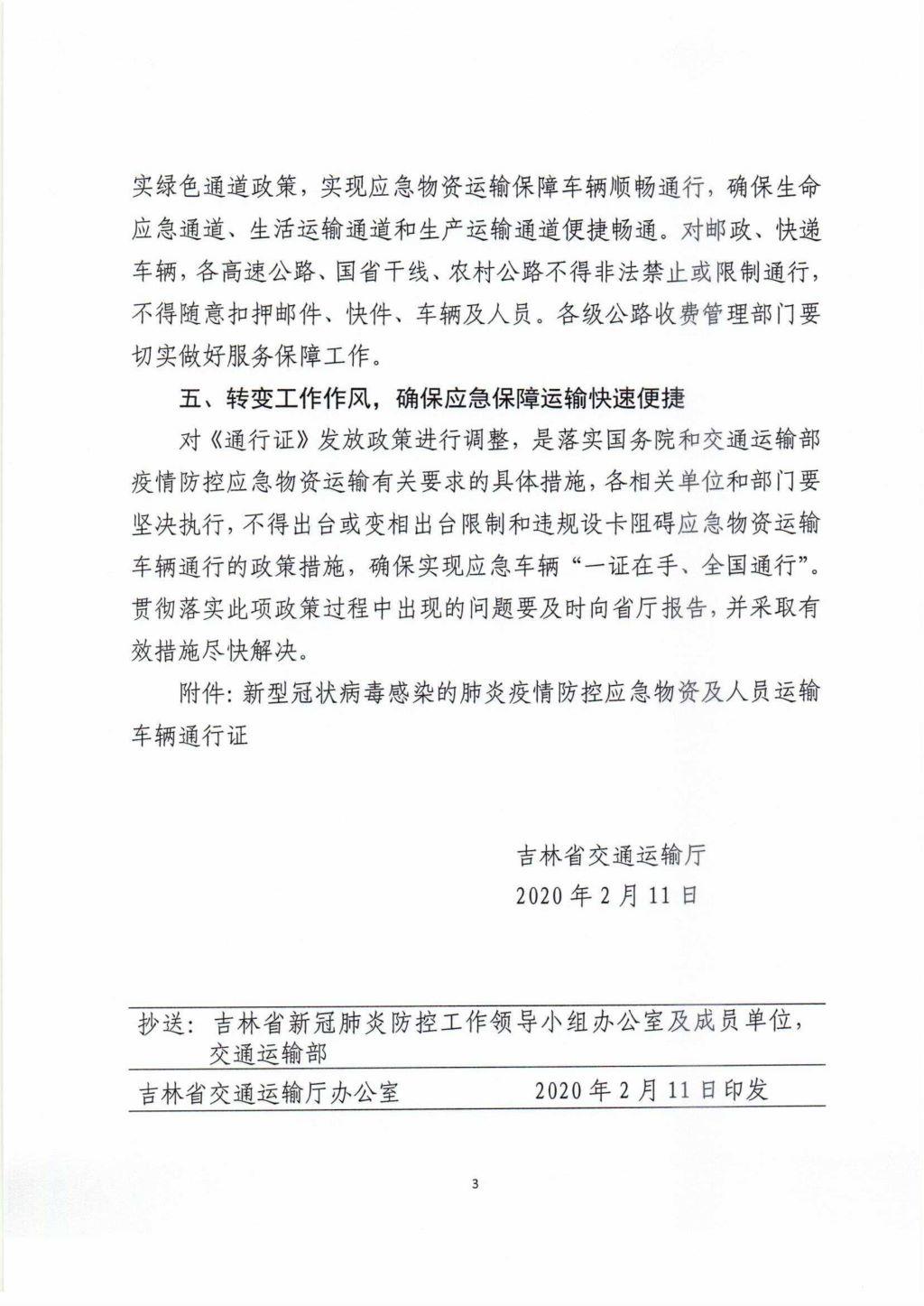 吉林省交通运输厅关于调整疫情防控期间应急物资运输保障有关政策的紧急通知