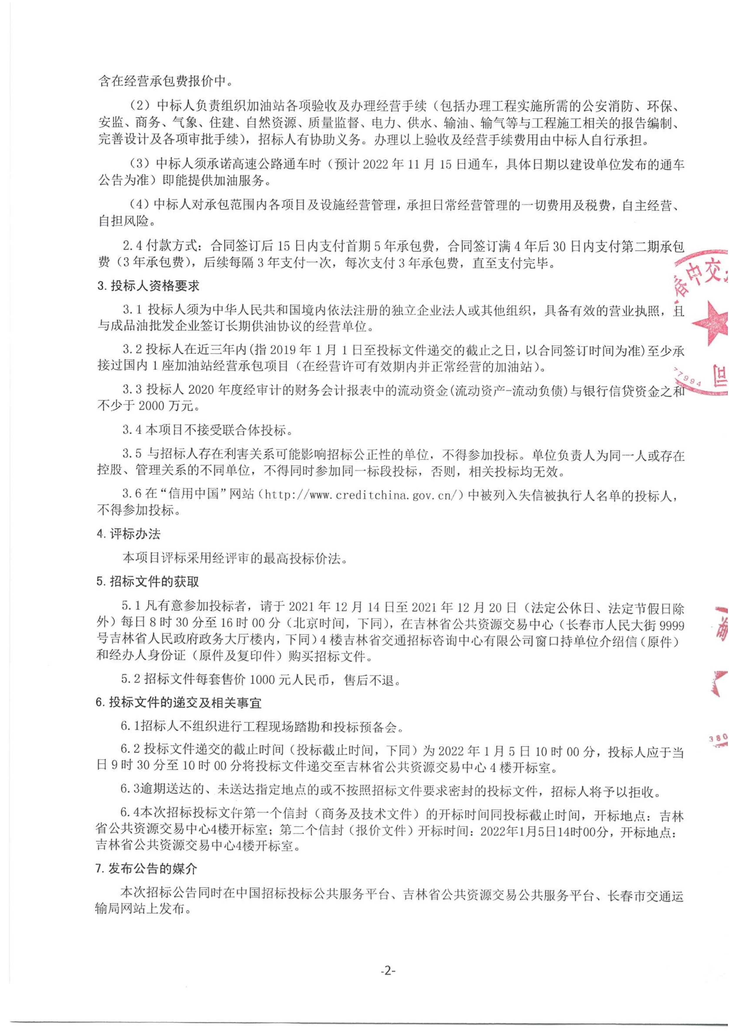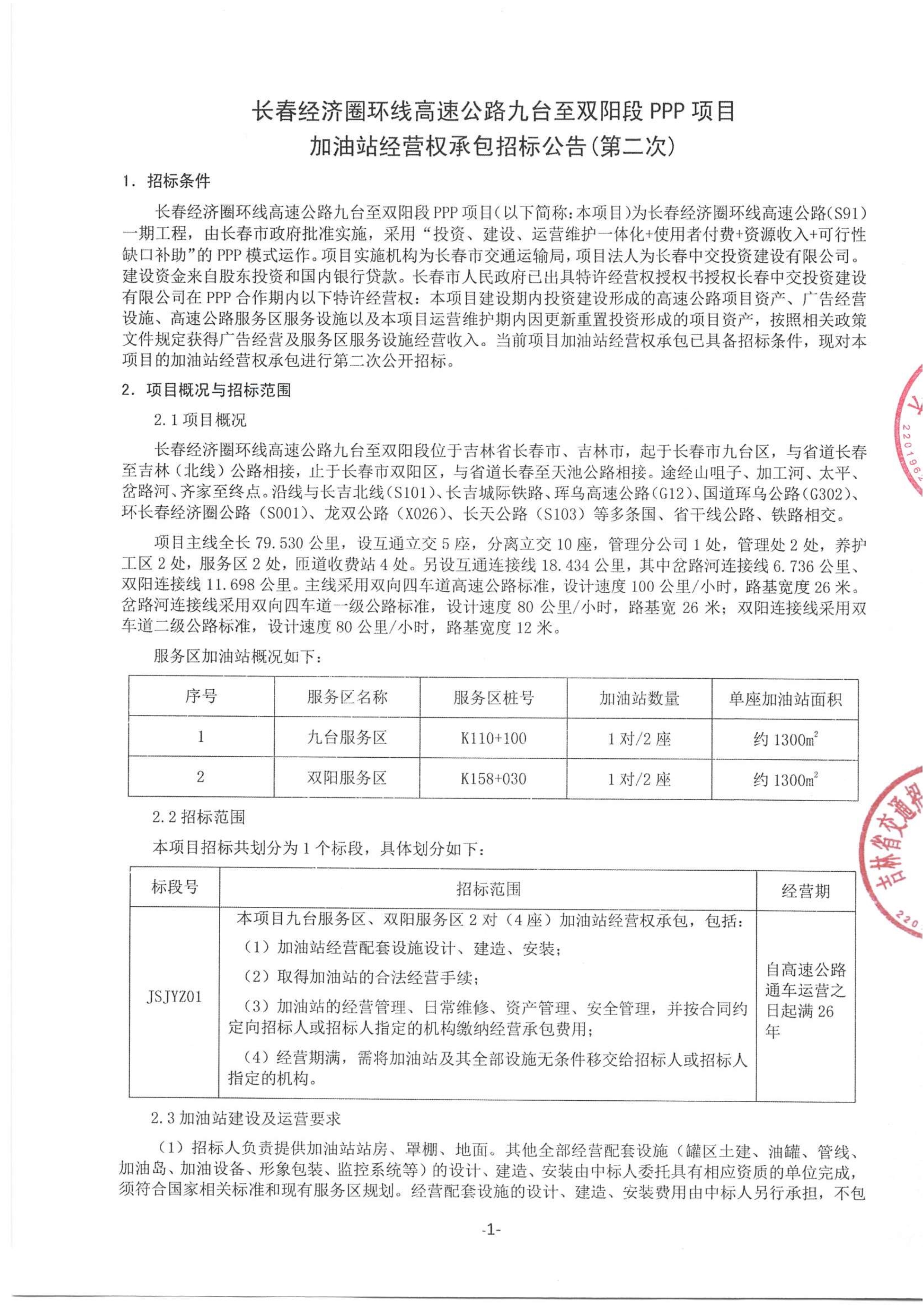 长春经济圈环线高速公路九台至双阳段PPP 项目加油站经营权承包招标公告(第二次)公开与公示内容.pdf
