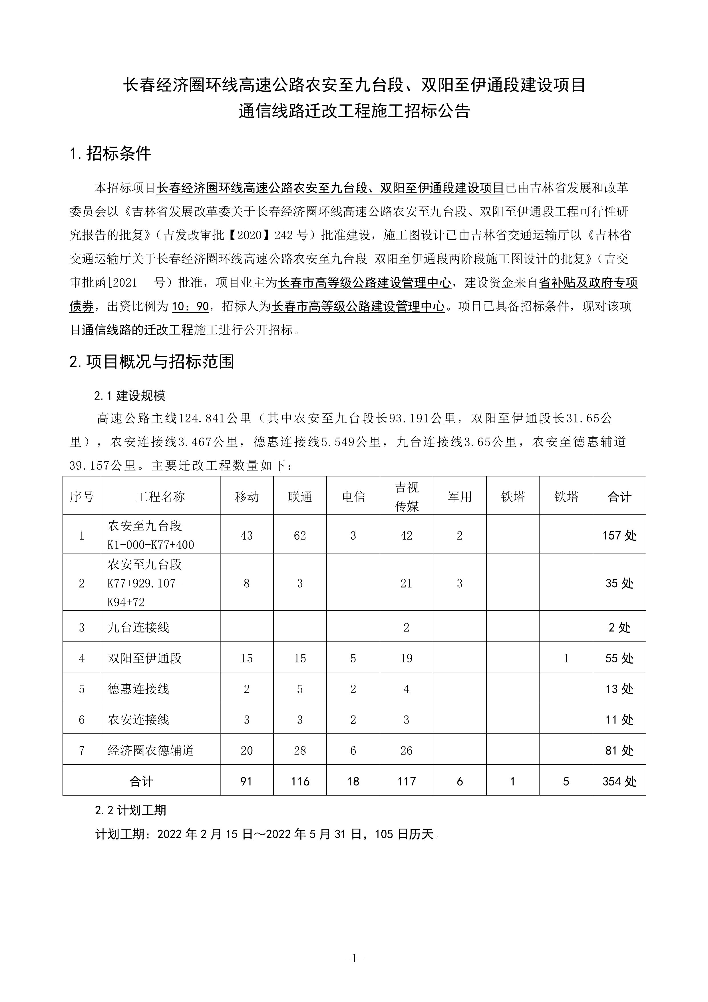 长春经济圈环线高速公路农安至九台段、双阳至伊通段建设项目通信线路迁改工程施工招标公告.pdf