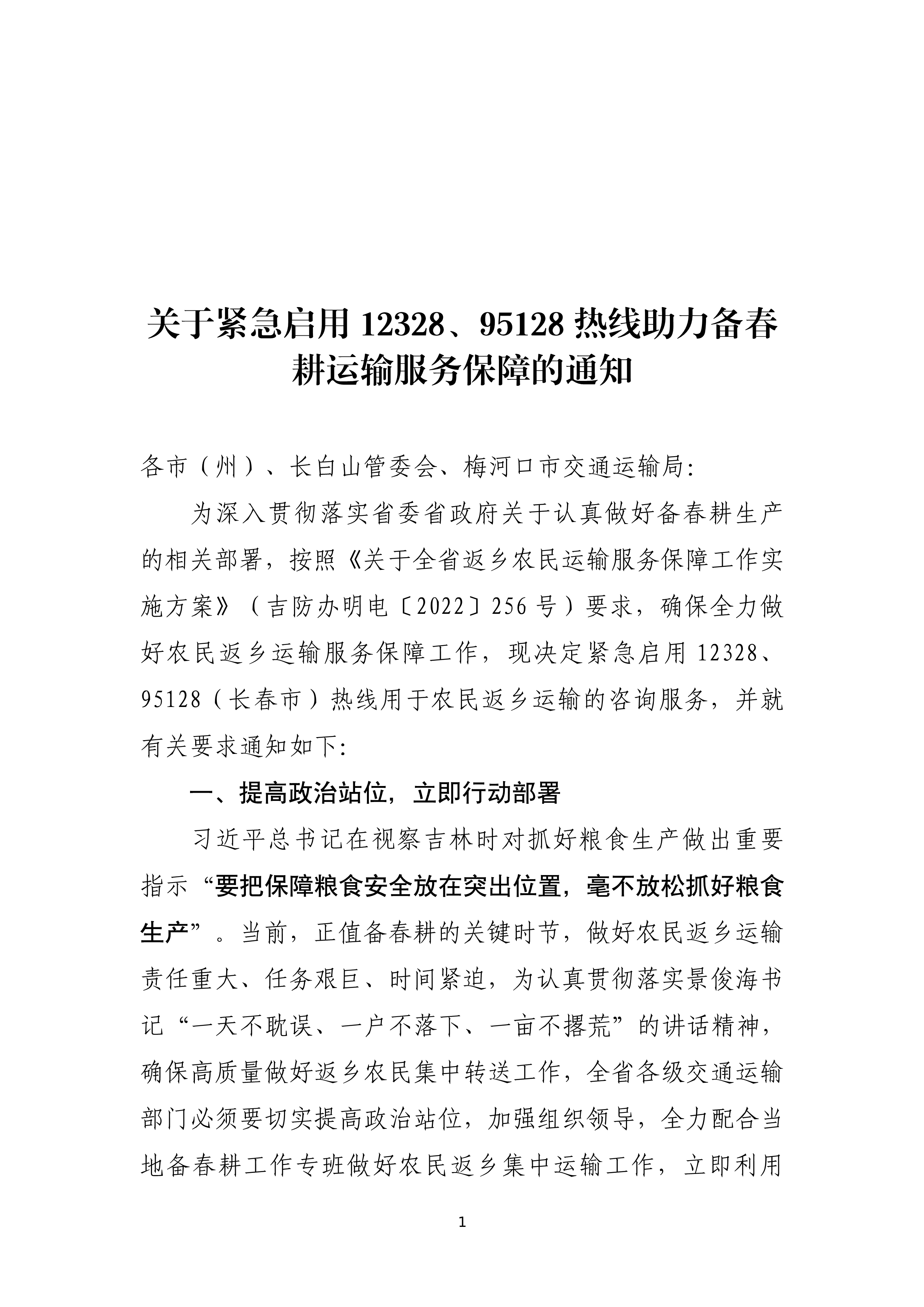 吉林省交通运输厅关于紧急启用12328、95128热线助力备春耕运输服务保障的通知.pdf