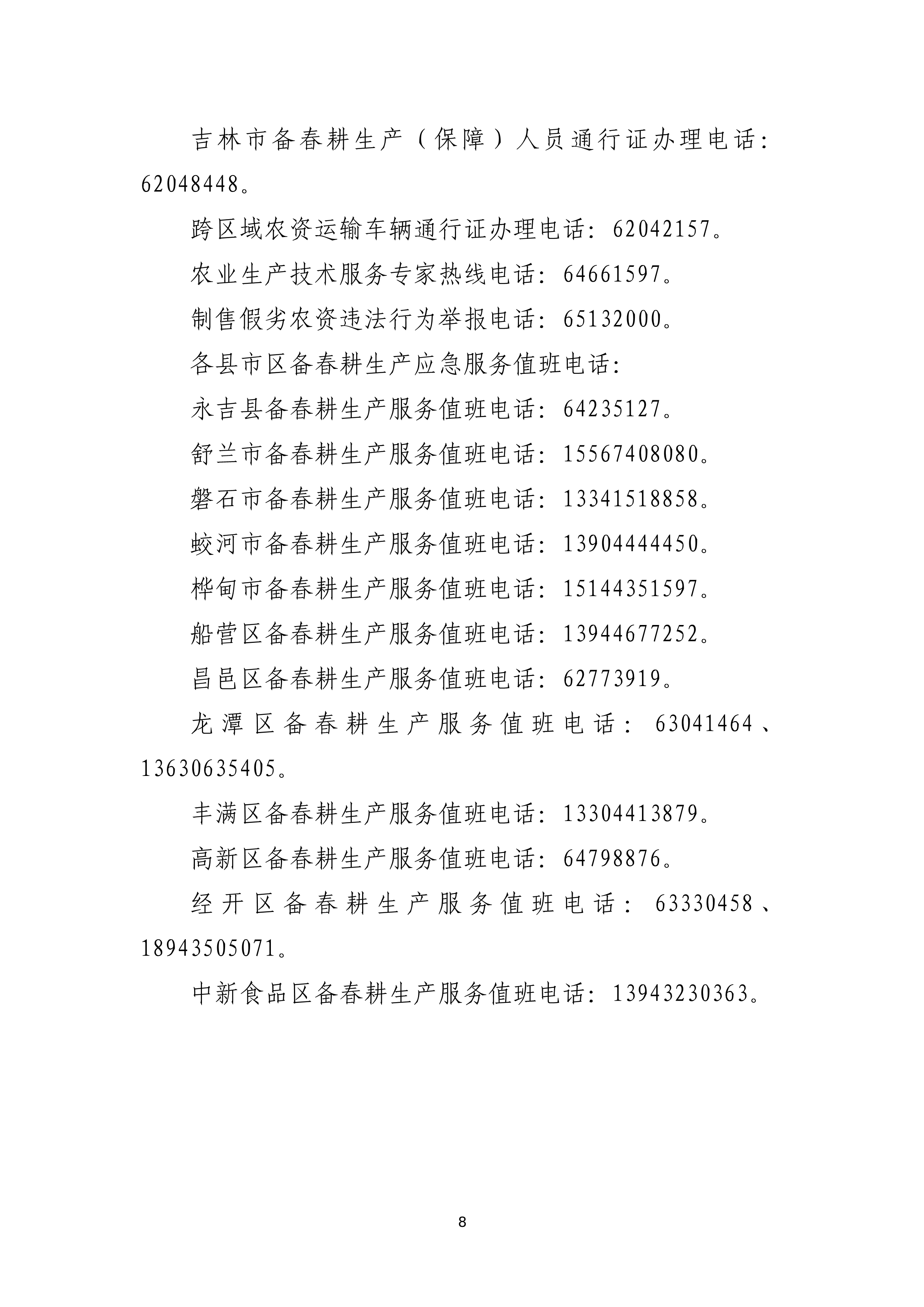 吉林省交通运输厅关于紧急启用12328、95128热线助力备春耕运输服务保障的通知