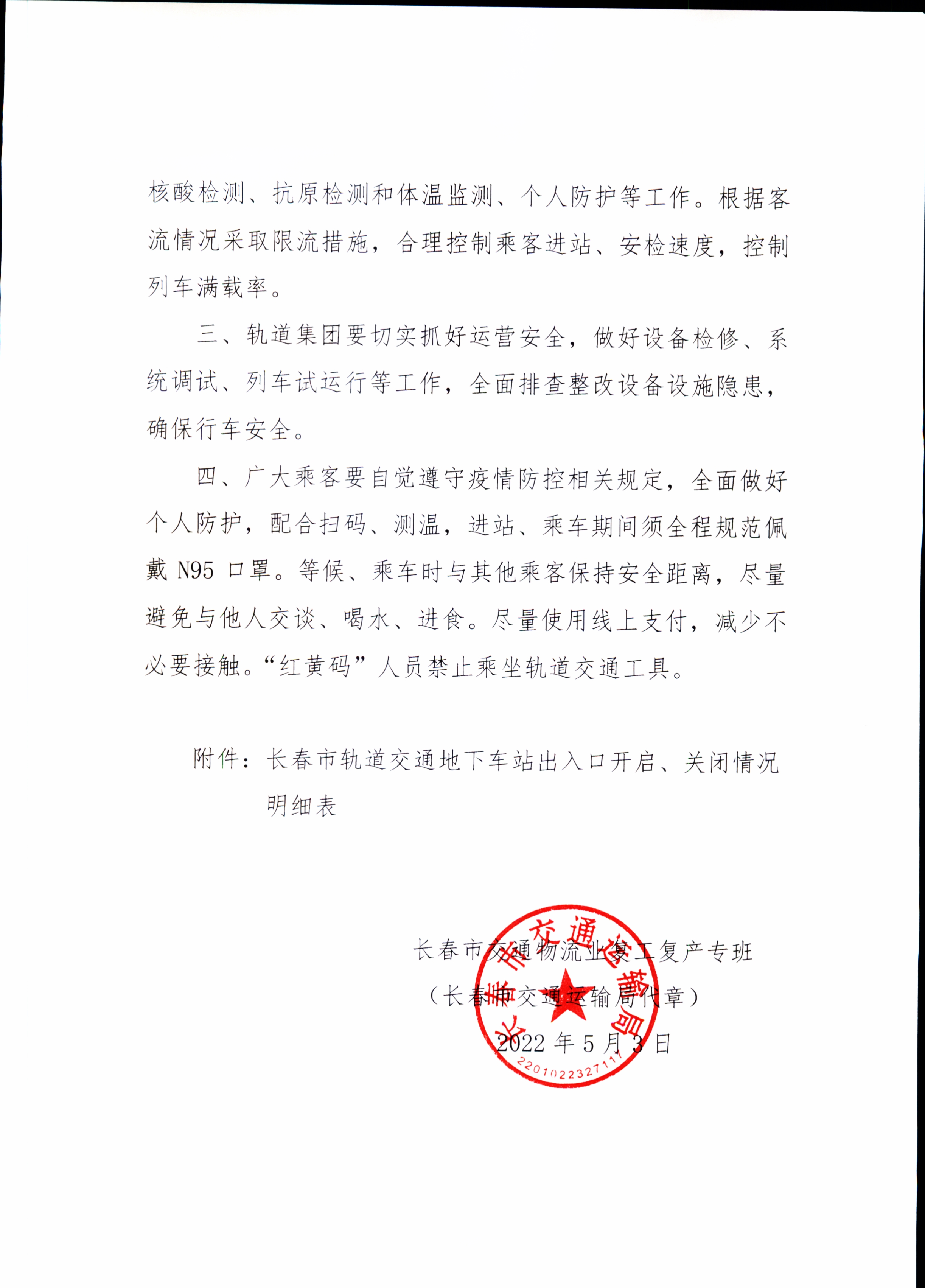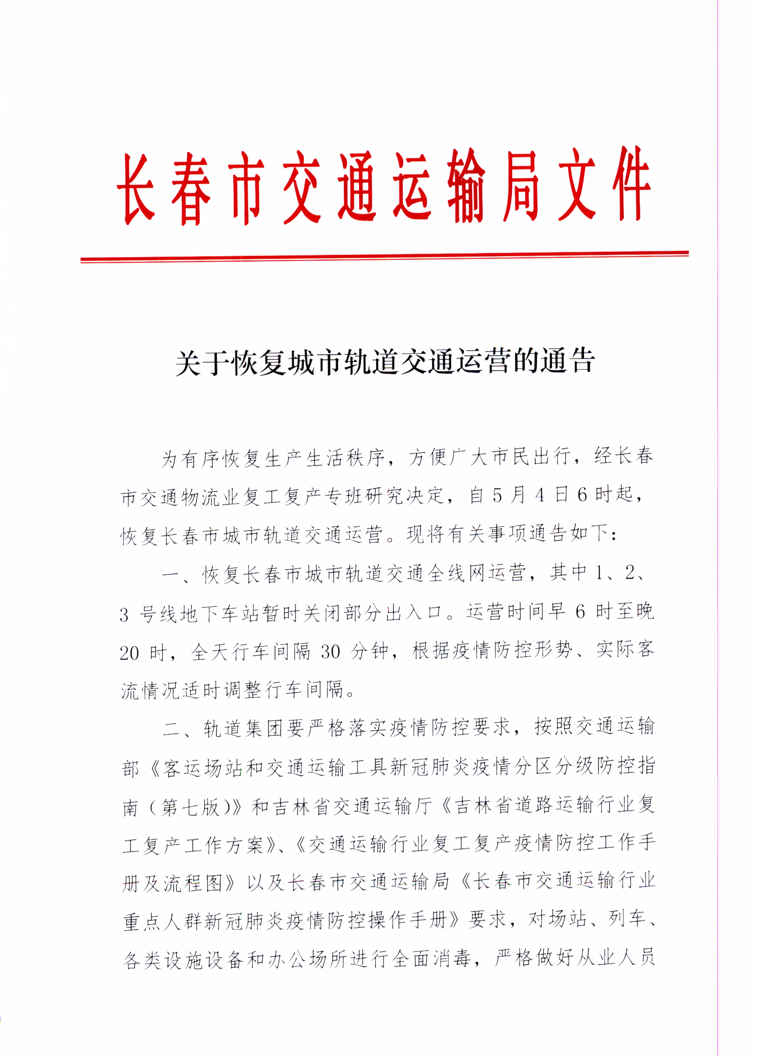 关于恢复长春市城市轨道交通运营的通告.pdf