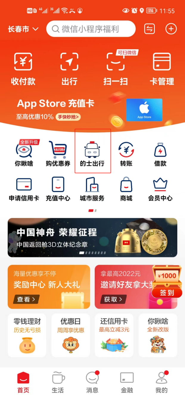 第二步,在“灵动长春”程序内点击“的士出行”。