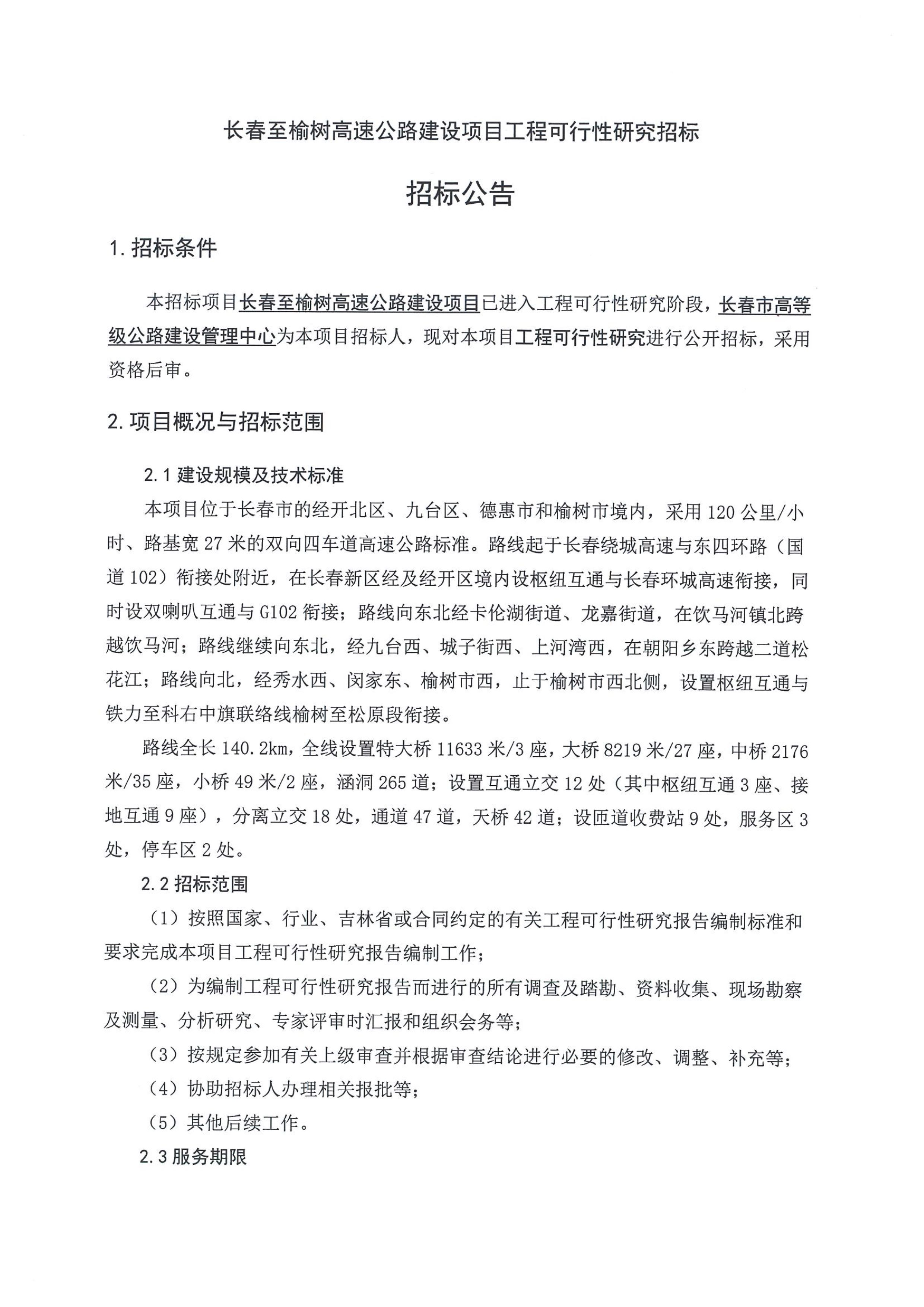 长春至榆树高速公路建设项目工程可行性研究招标招标公告.pdf