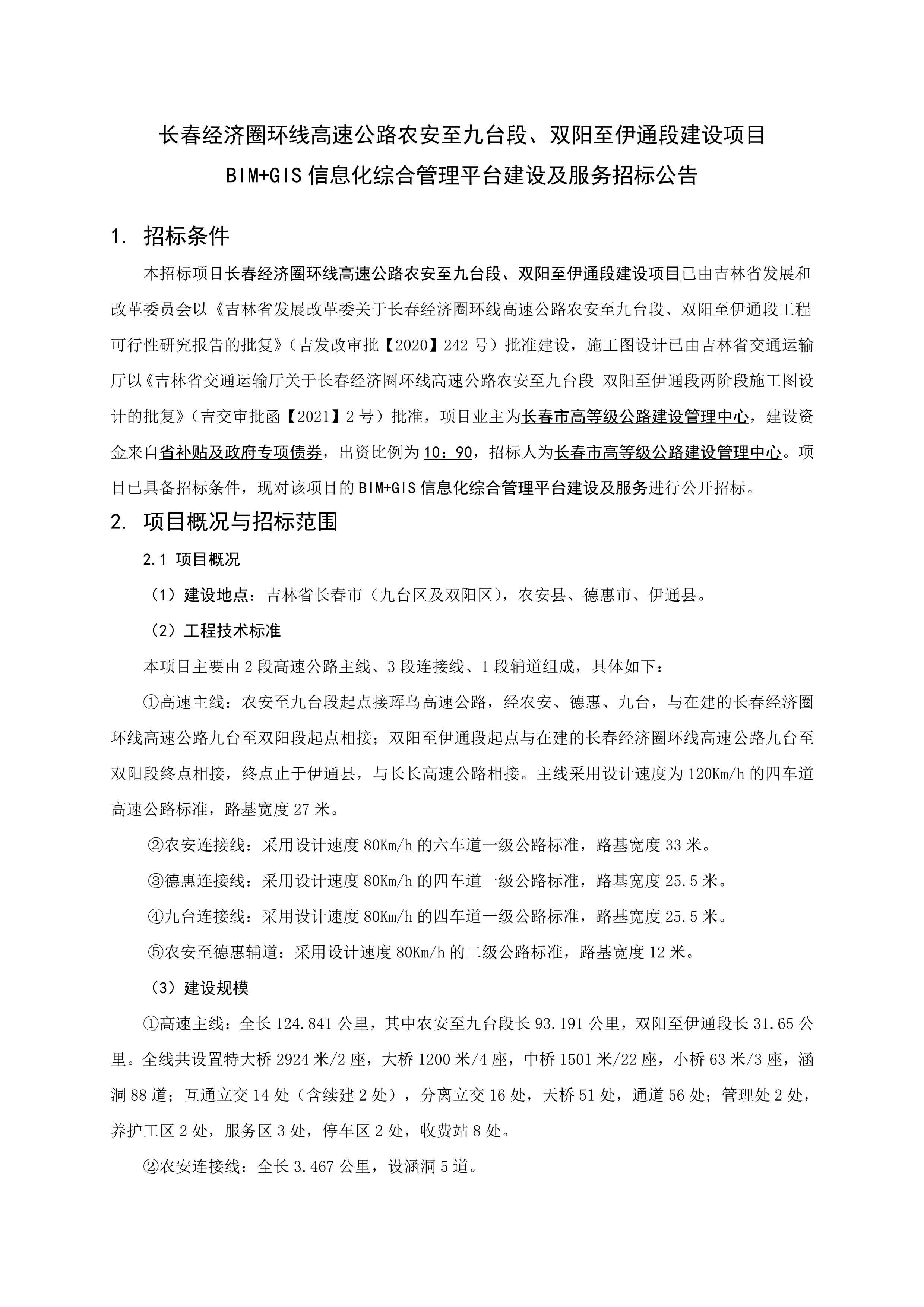 长春经济圈环线高速公路农安至九台段、双阳至伊通段建设项目BIM GIS信息化综合管理平台建设及服务招标公告.pdf