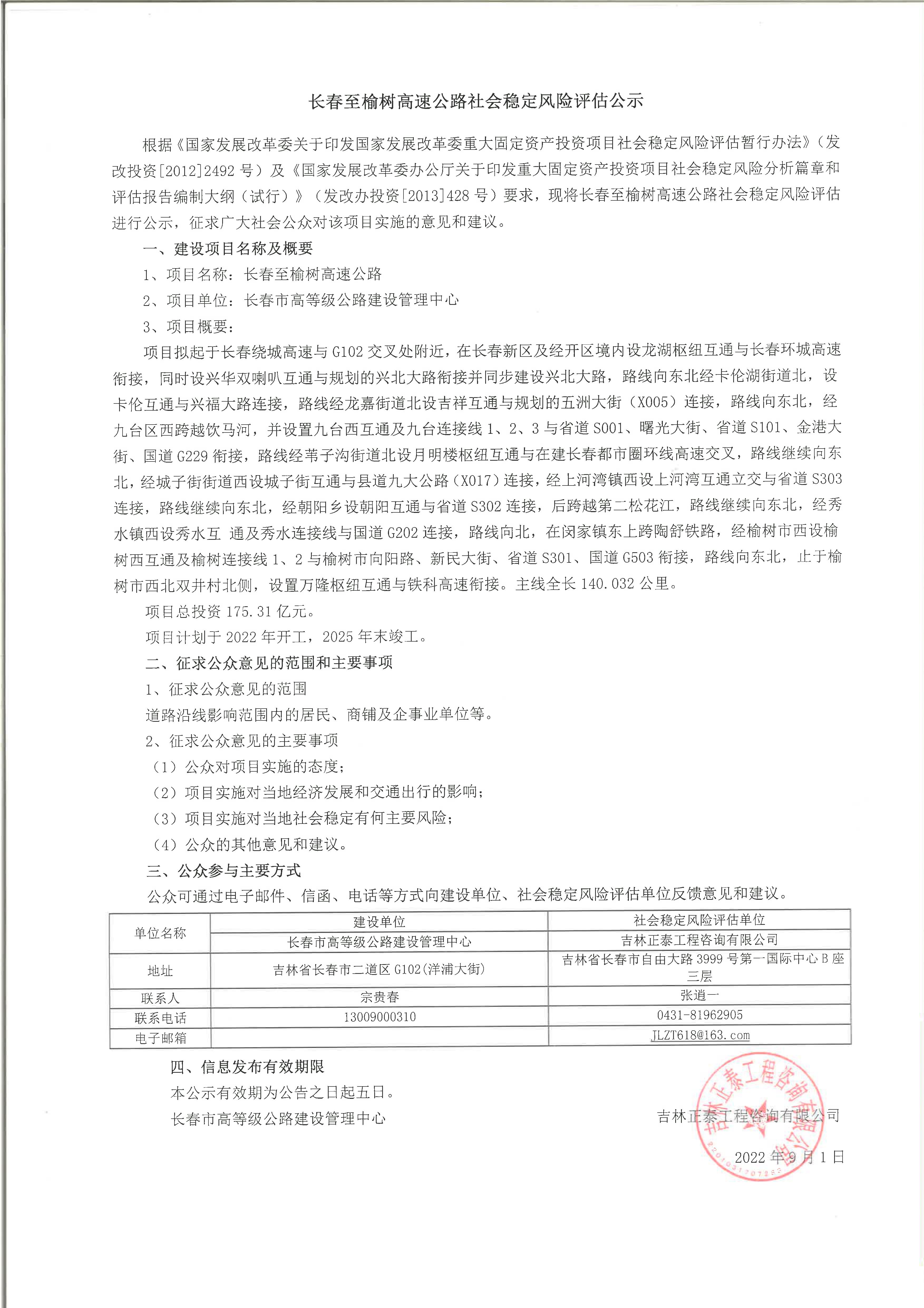 长春至榆树高速公路建设项目社会稳定风险评估公示.pdf