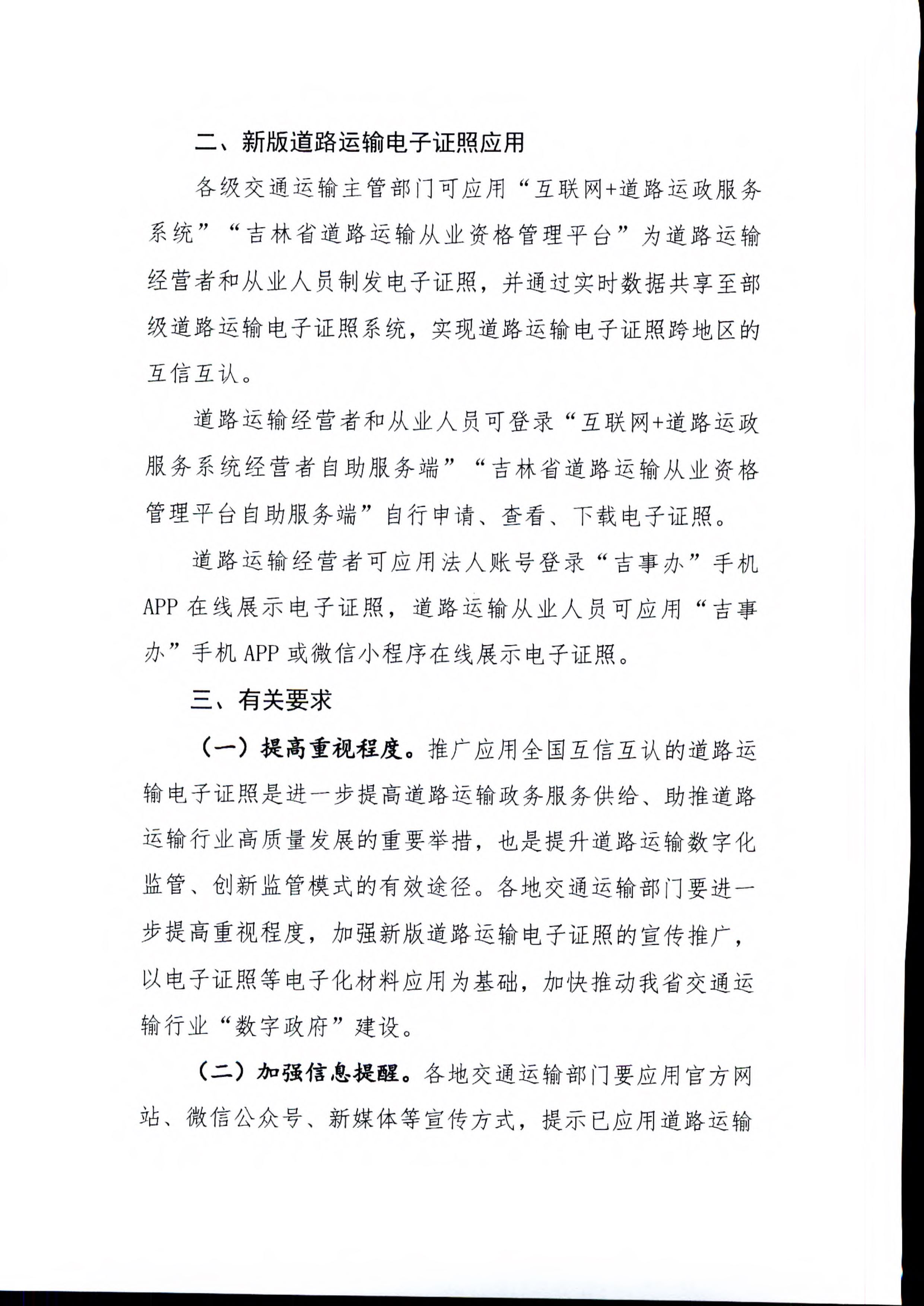 吉林省交通运输厅关于规范应用新版道路运输电子证照的通知.pdf
