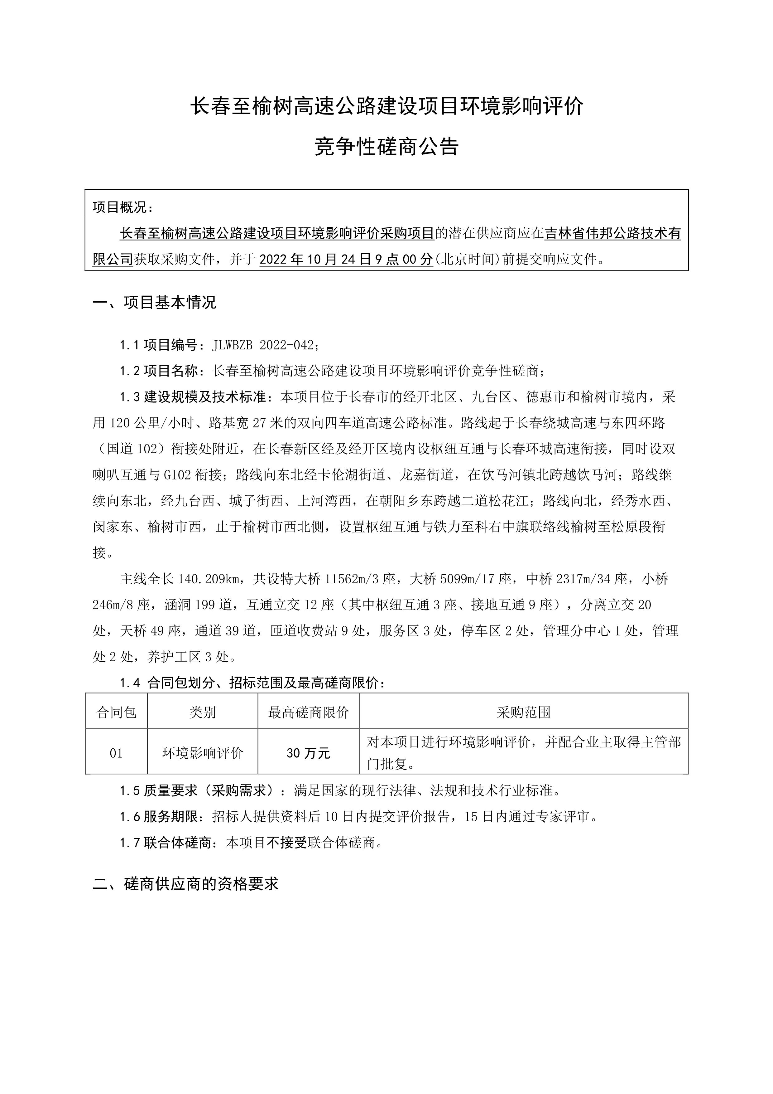 长春至榆树高速公路建设项目环境影响评价竞争性磋商公告.pdf