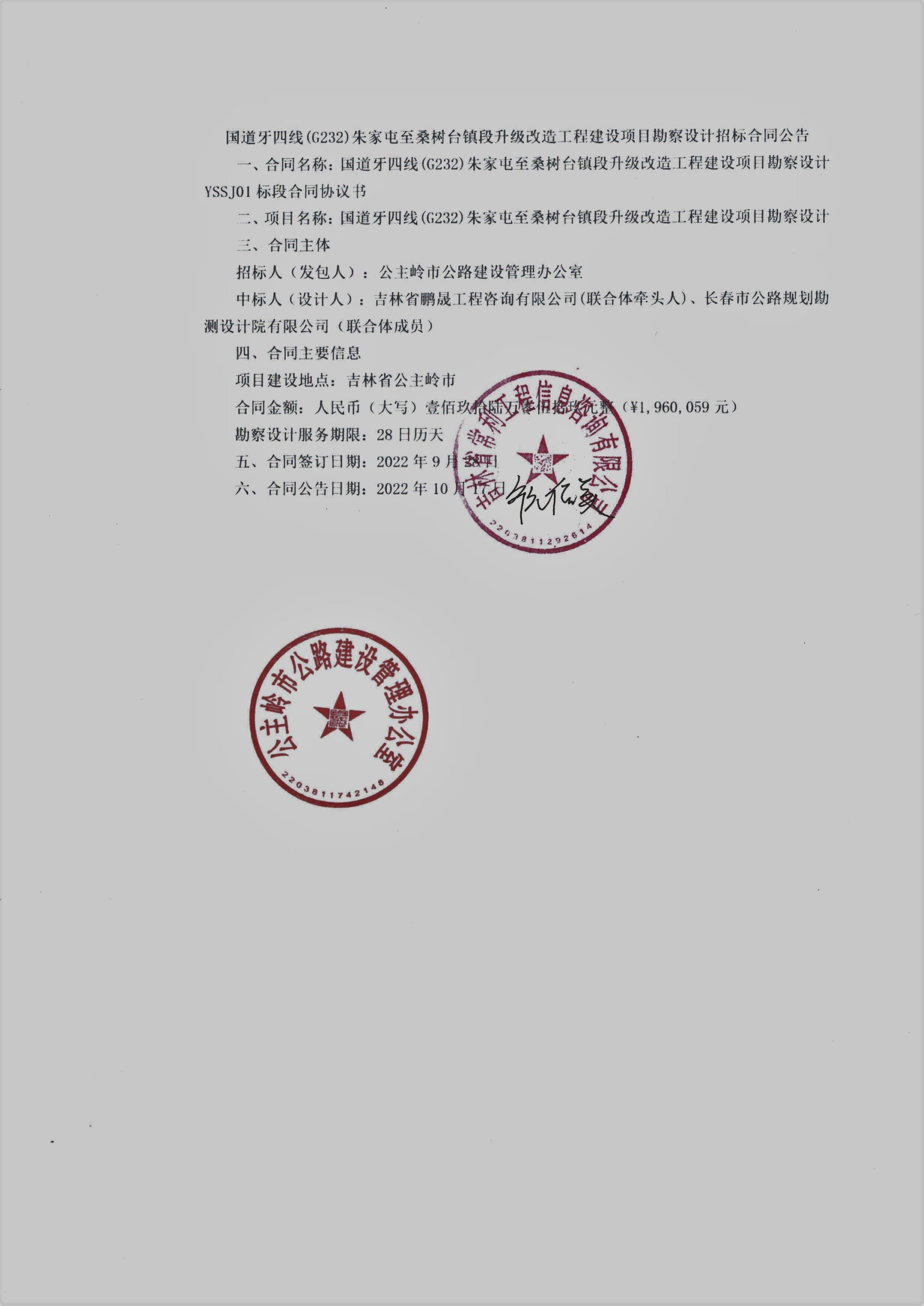 国道牙四线(G232)朱家屯至桑树台镇段升级改造工程建设项目勘察设计招标合同公告.pdf