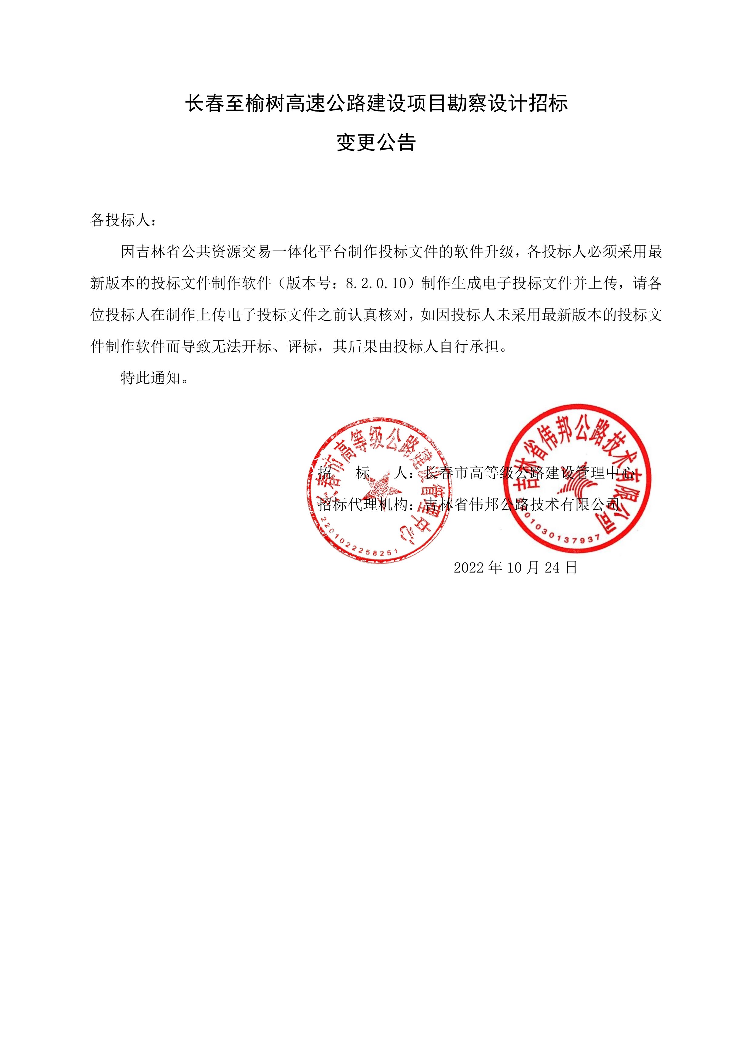 长春至榆树高速公路建设项目勘察设计招标变更公告