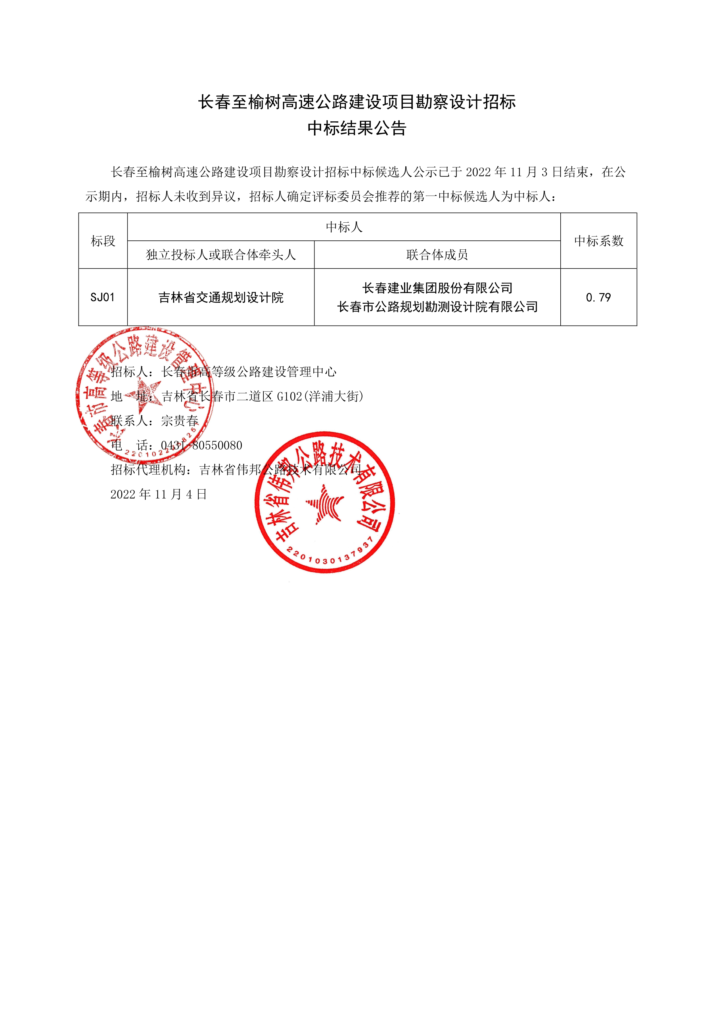 长春至榆树高速公路建设项目勘察设计招标中标结果公告.pdf