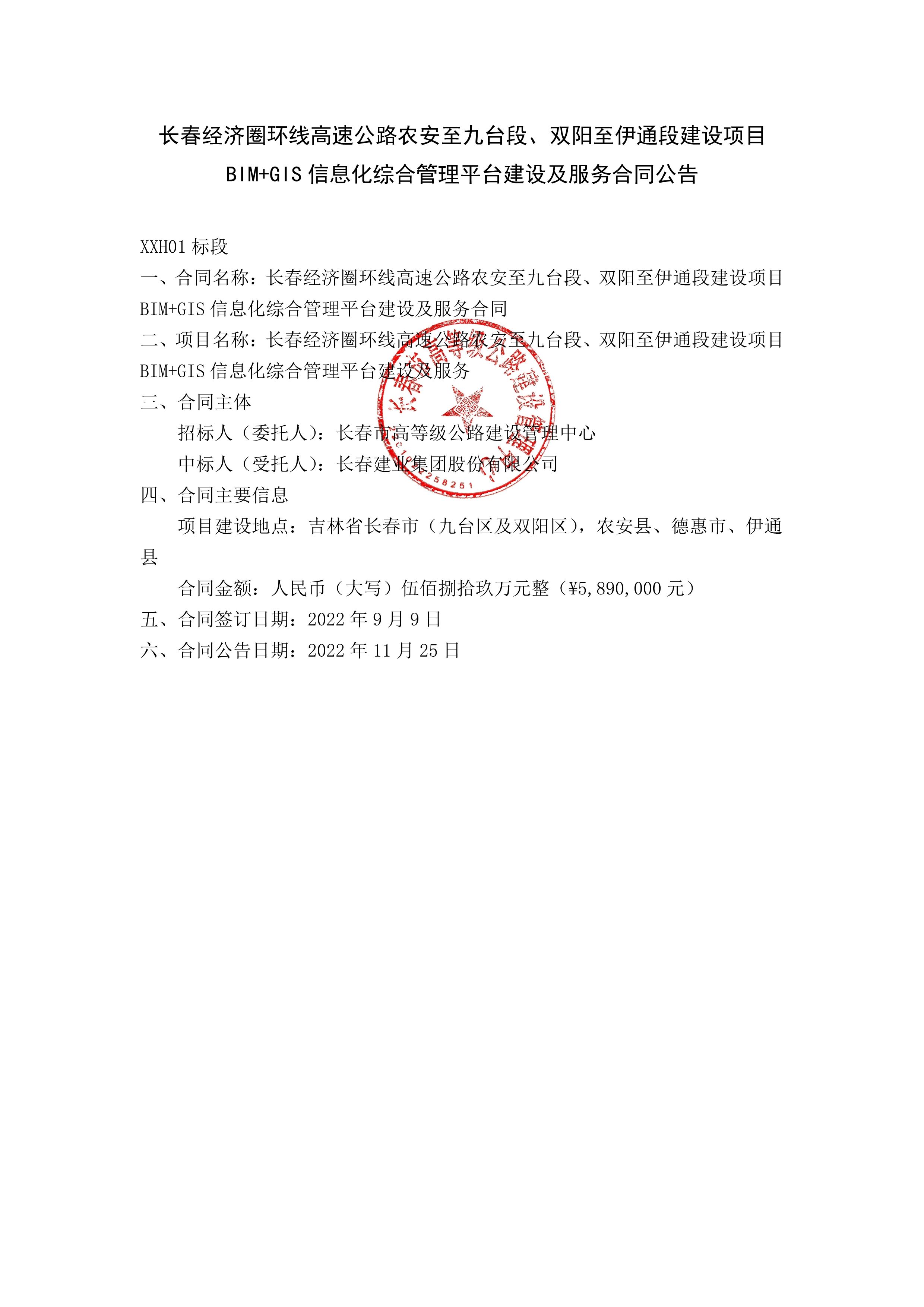长春经济圈环线高速公路农安至九台段、双阳至伊通段建设项目BIM+GIS信息化综合管理平台建设及服务合同公告.pdf