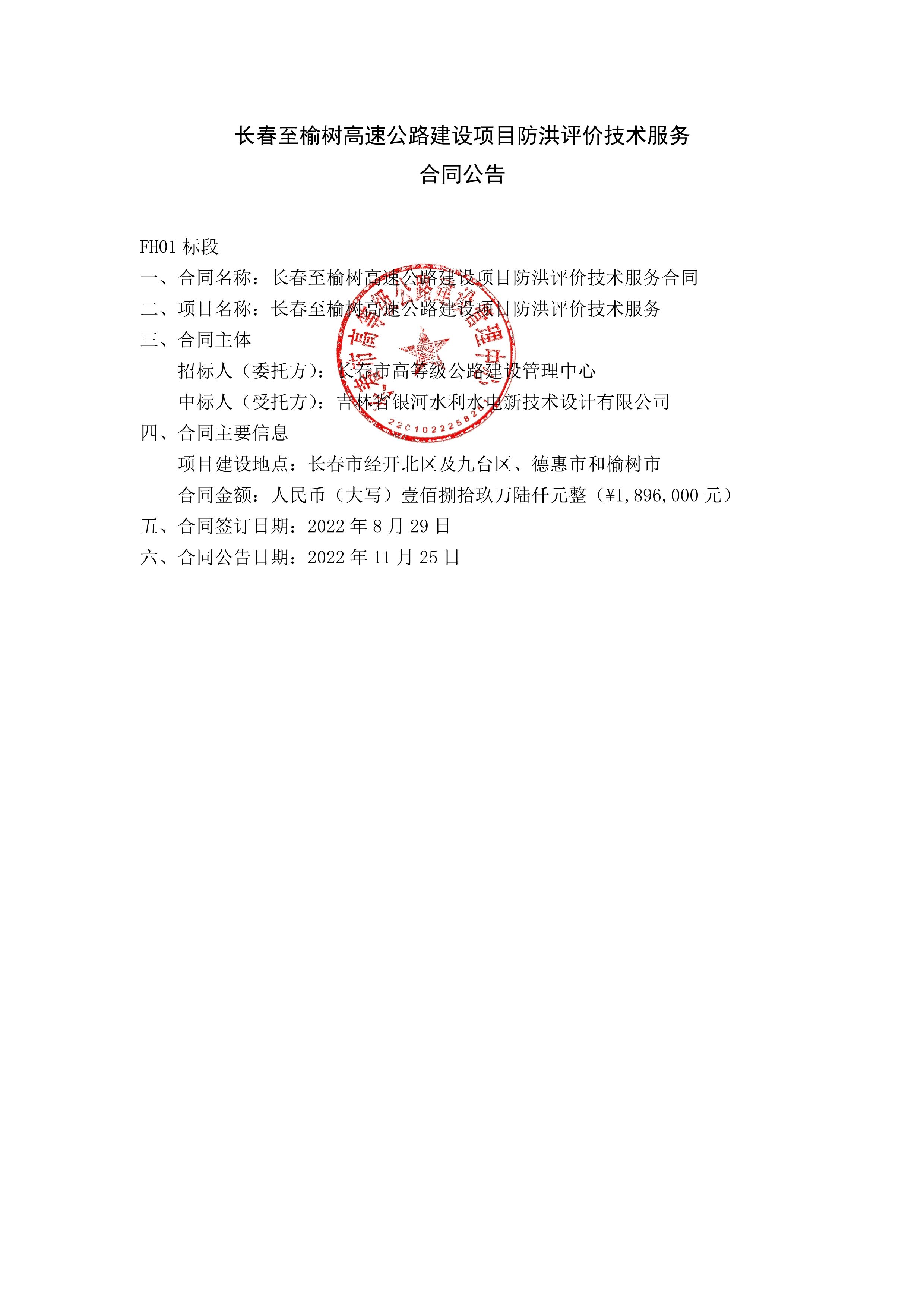 长春至榆树高速公路建设项目防洪评价技术服务合同公告.pdf
