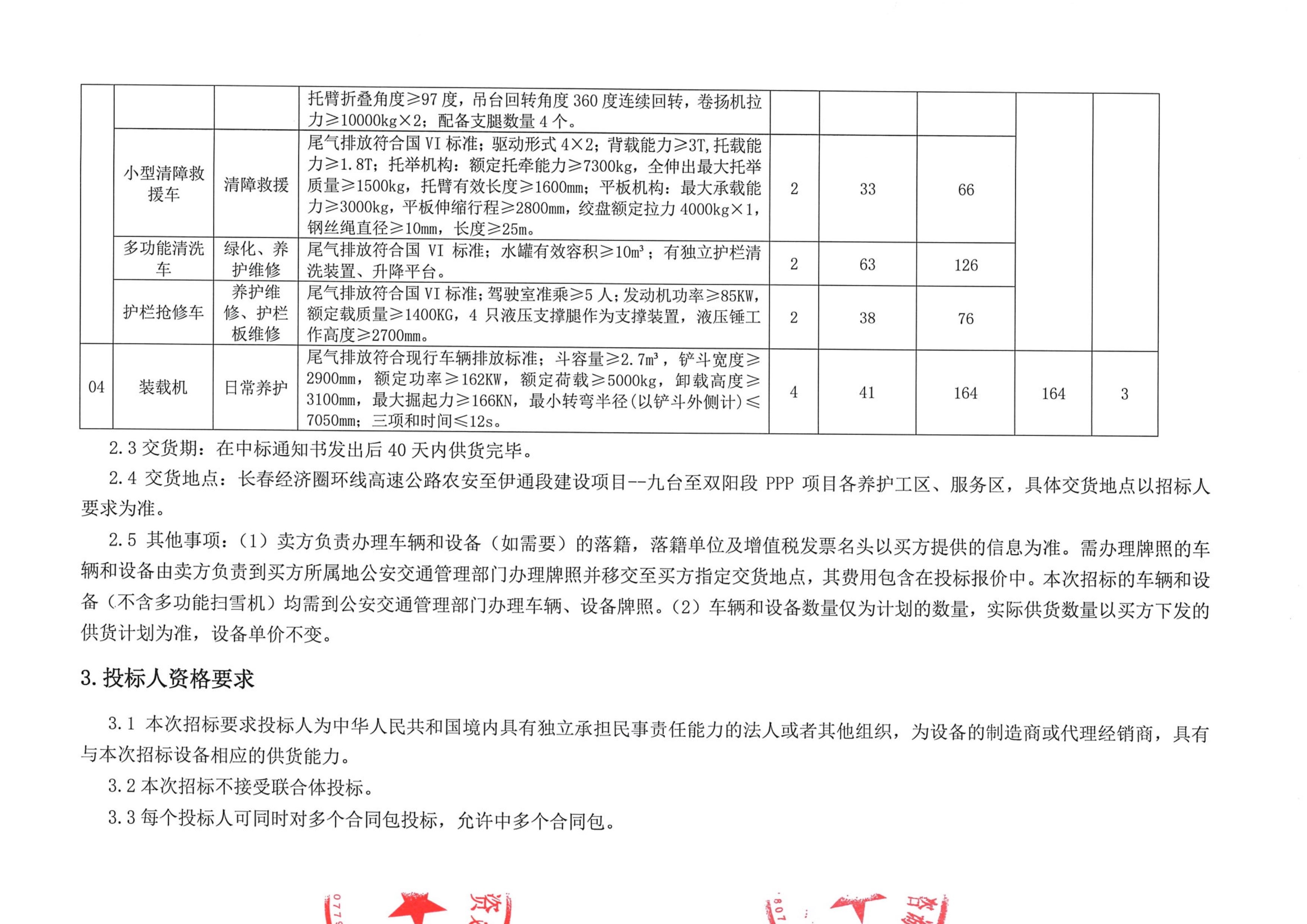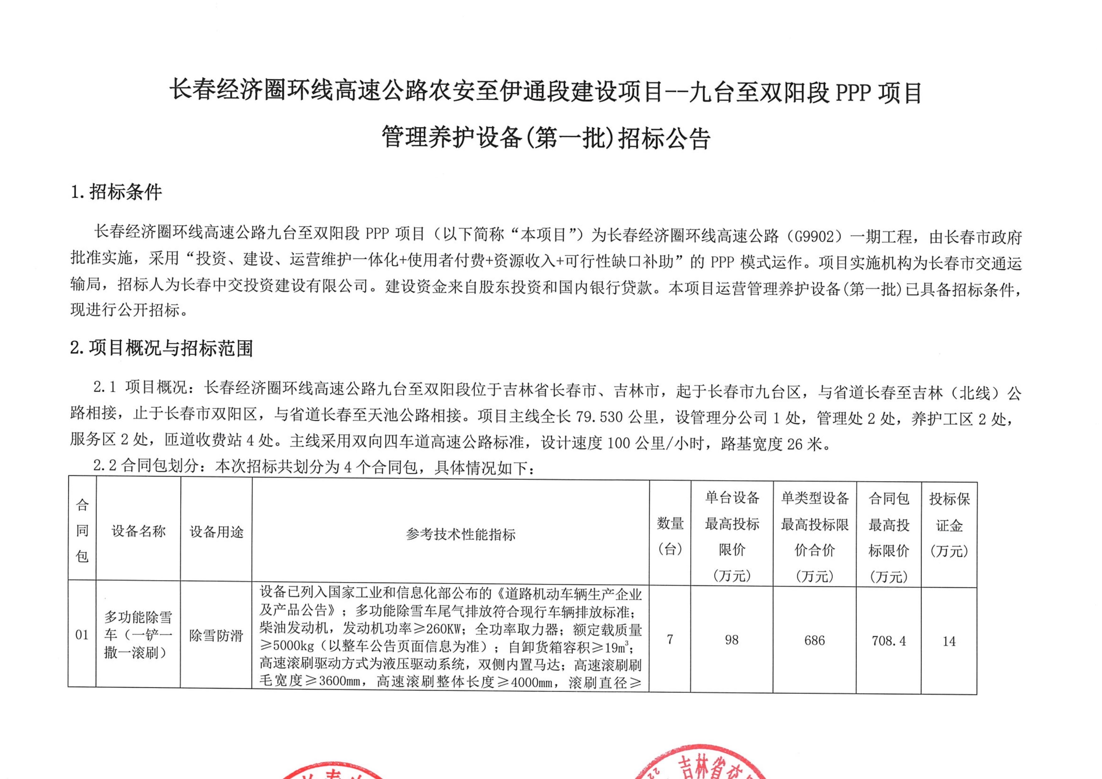 长春经济圈环线高速公路九台至双阳段PPP项目管理养护设备(第一批)招标公告