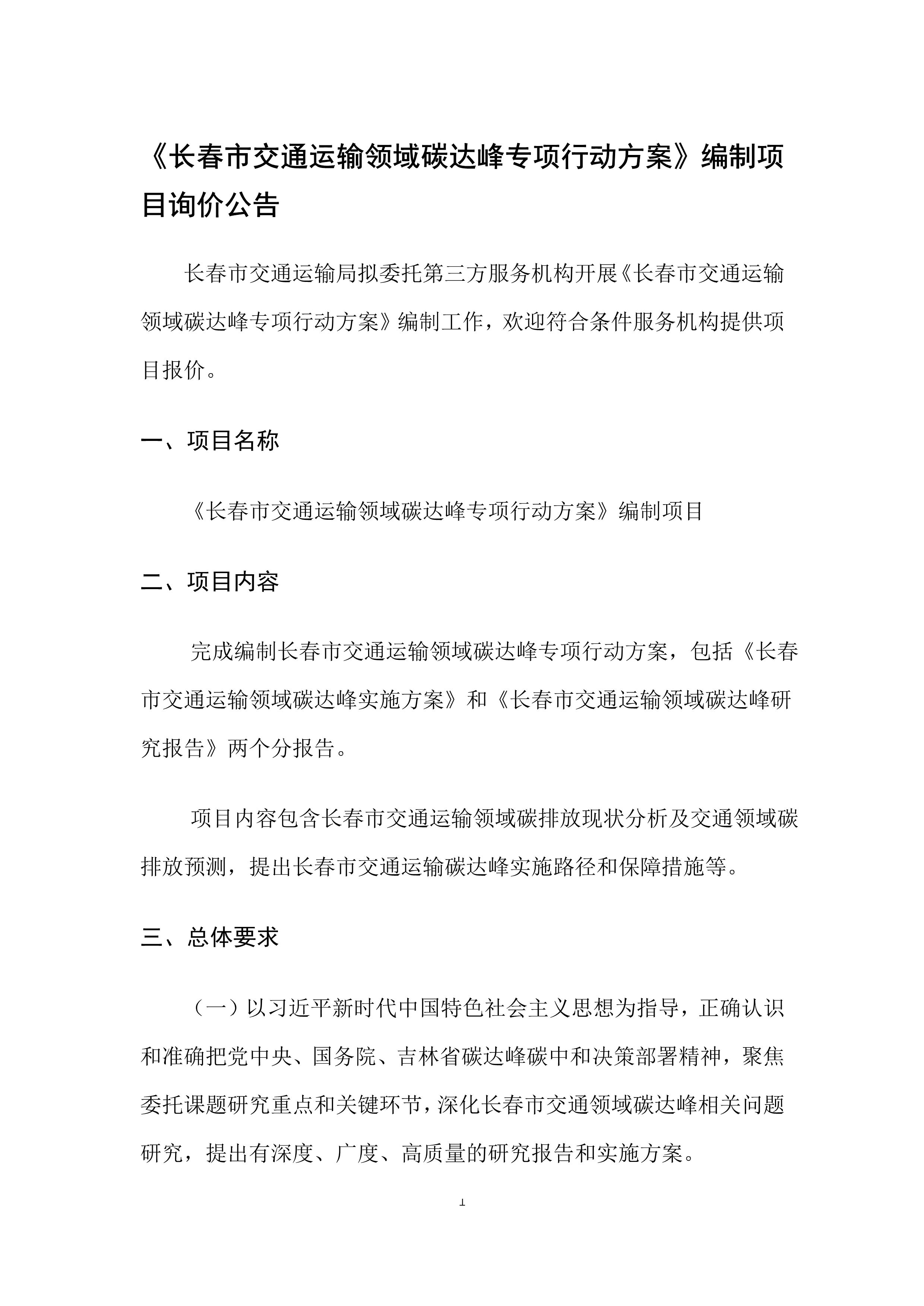 《长春市交通运输领域碳达峰专项行动方案》编制项目询价公告