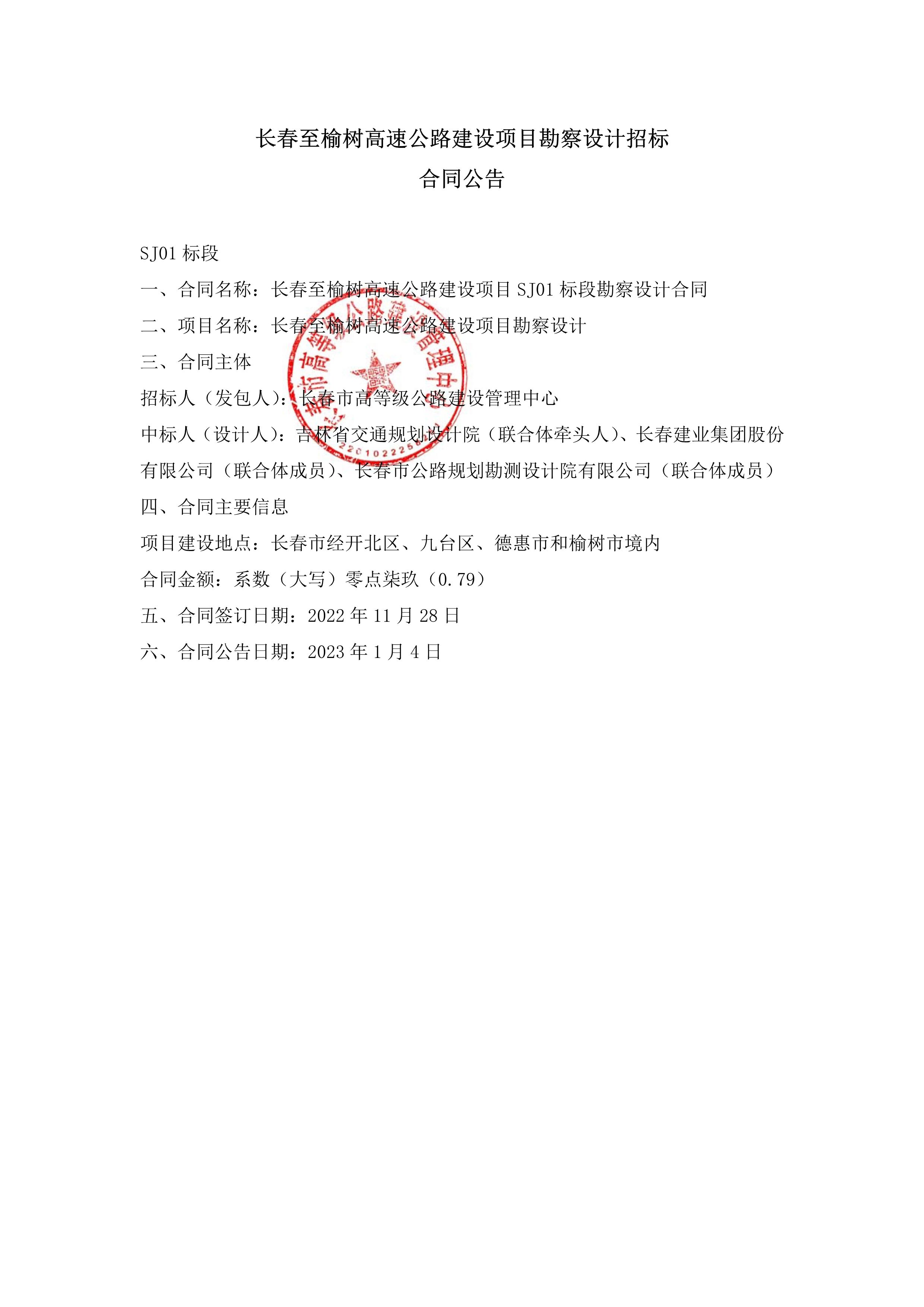 长春至榆树高速公路项目勘察设计合同公告.pdf
