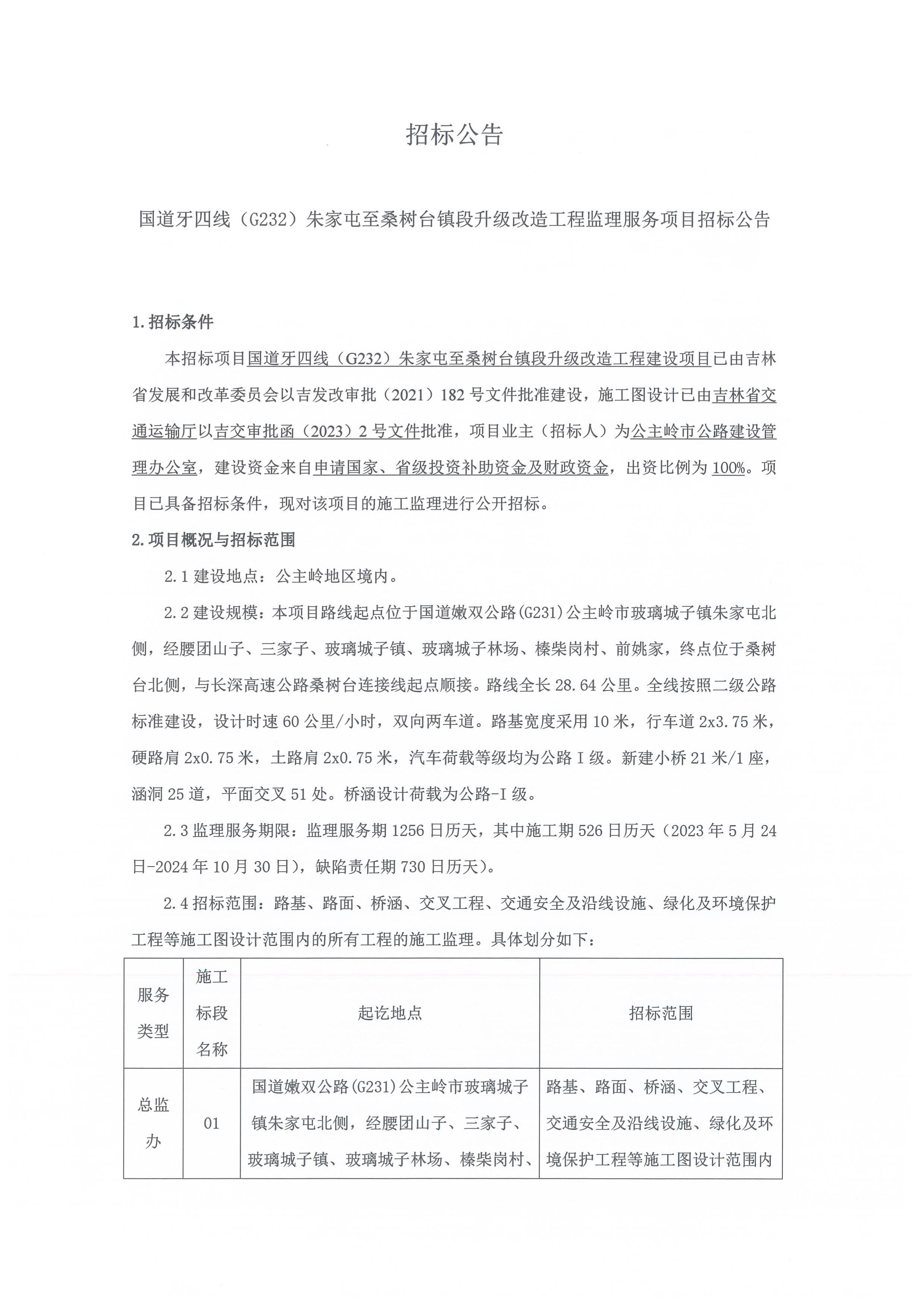 国道牙四线(G232)朱家屯至桑树台镇段升级改造工程监理服务项目招标招标文件关键内容信息公开.pdf