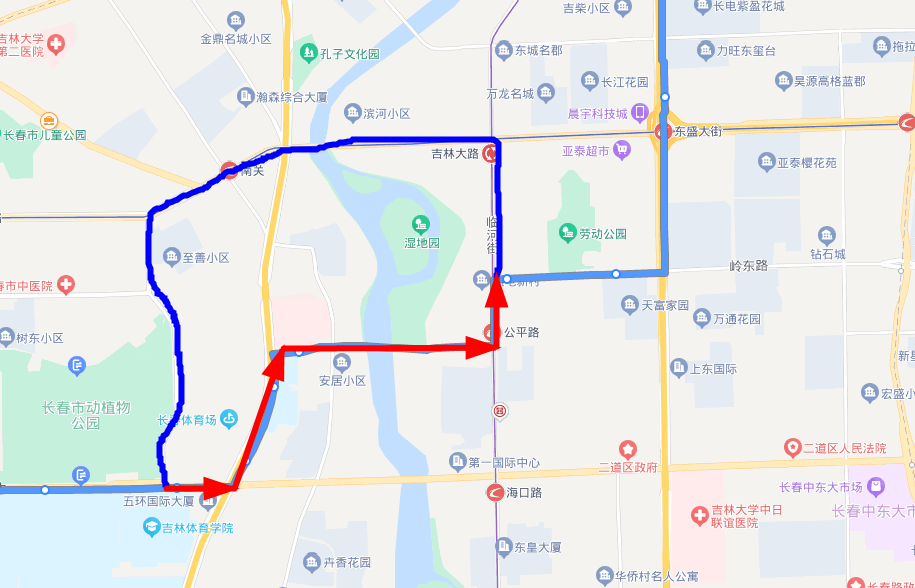 意义作用:吉大二院新院区投入使用后,公平西路无公交覆盖,线路优化后,可解决沿线市民到吉大二院的出行需求,同时建立公平西路与轨道交通4号线的连接。