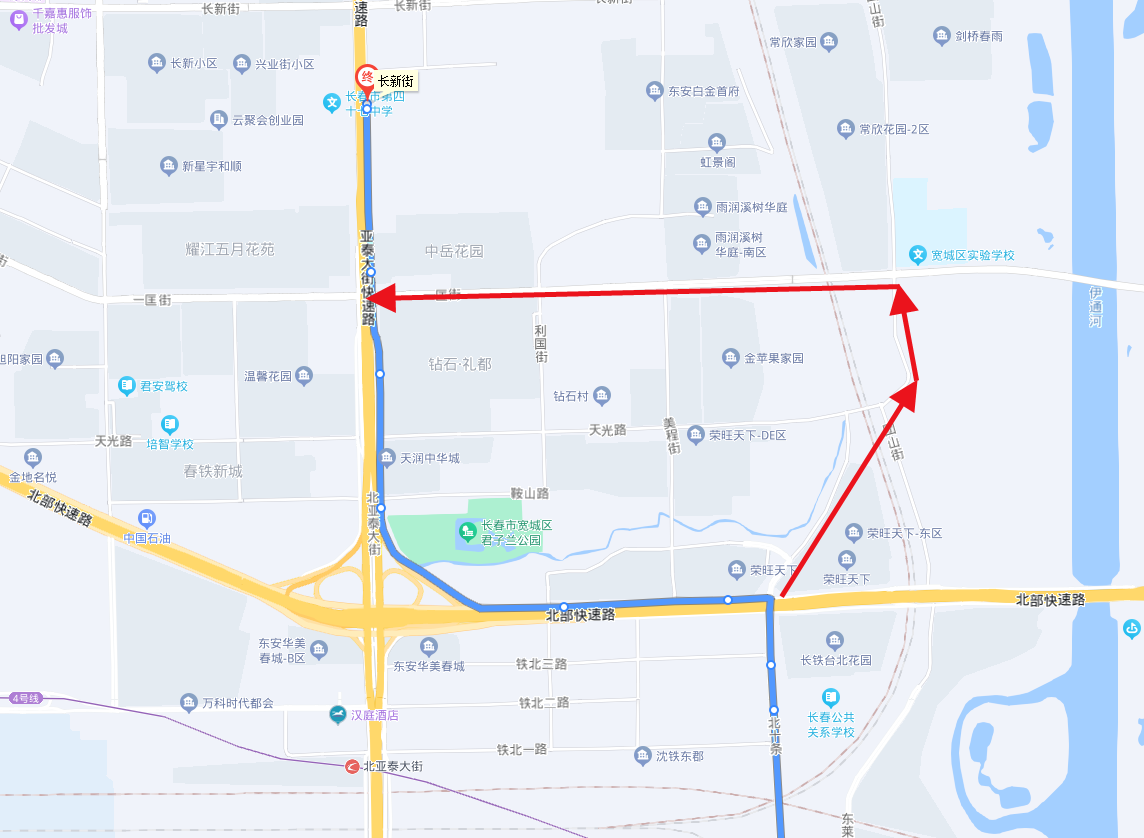 意义作用:因路网结构限制,线路在亚泰大街台北大街处上下行不一致,目前道路已具备通行条件,为便利乘客出行,计划将上下行调整一致,取消亚泰大街部分。