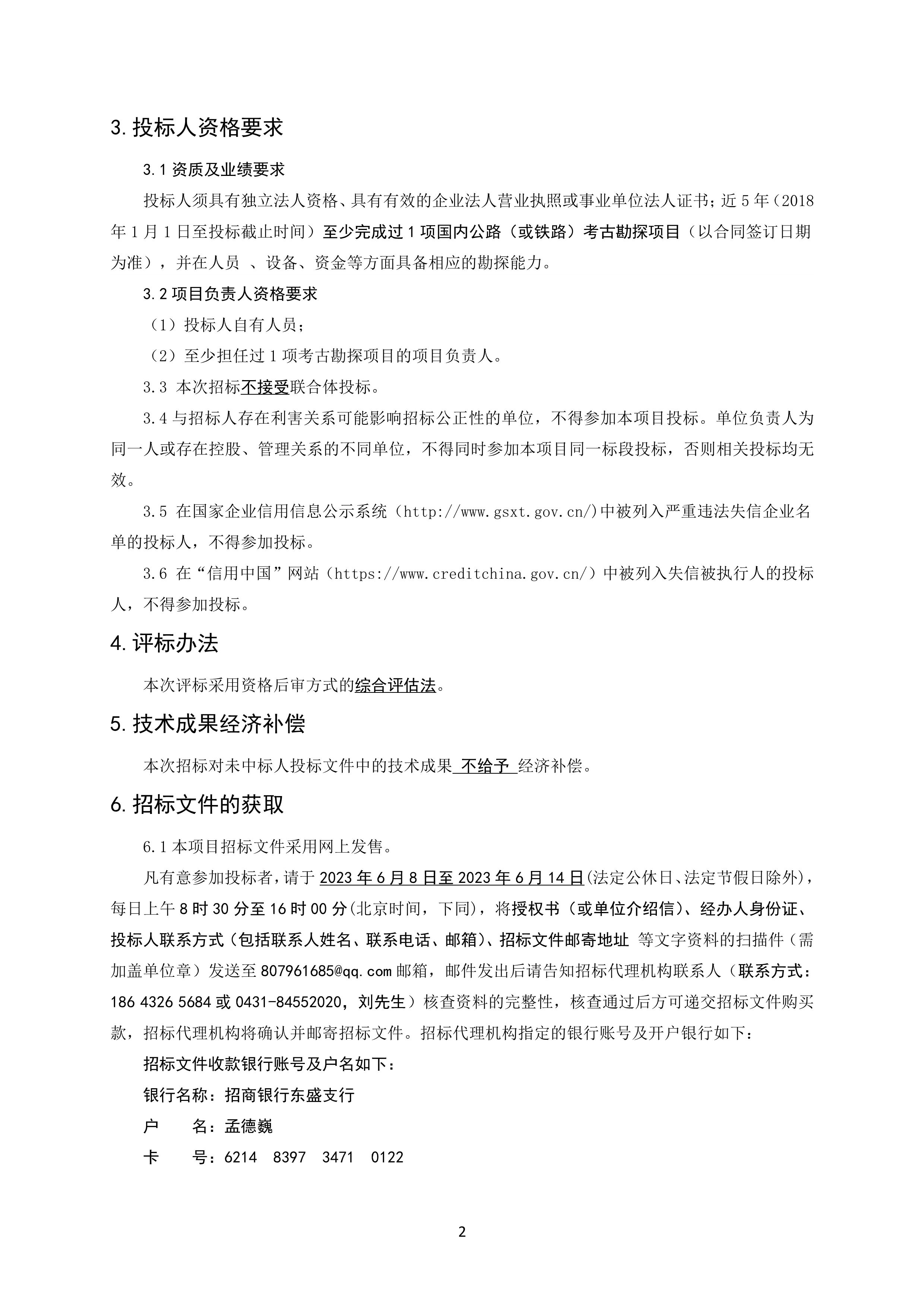 长春至榆树高速公路建设项目考古勘探技术服务招标招标文件关键内容信息公开.pdf