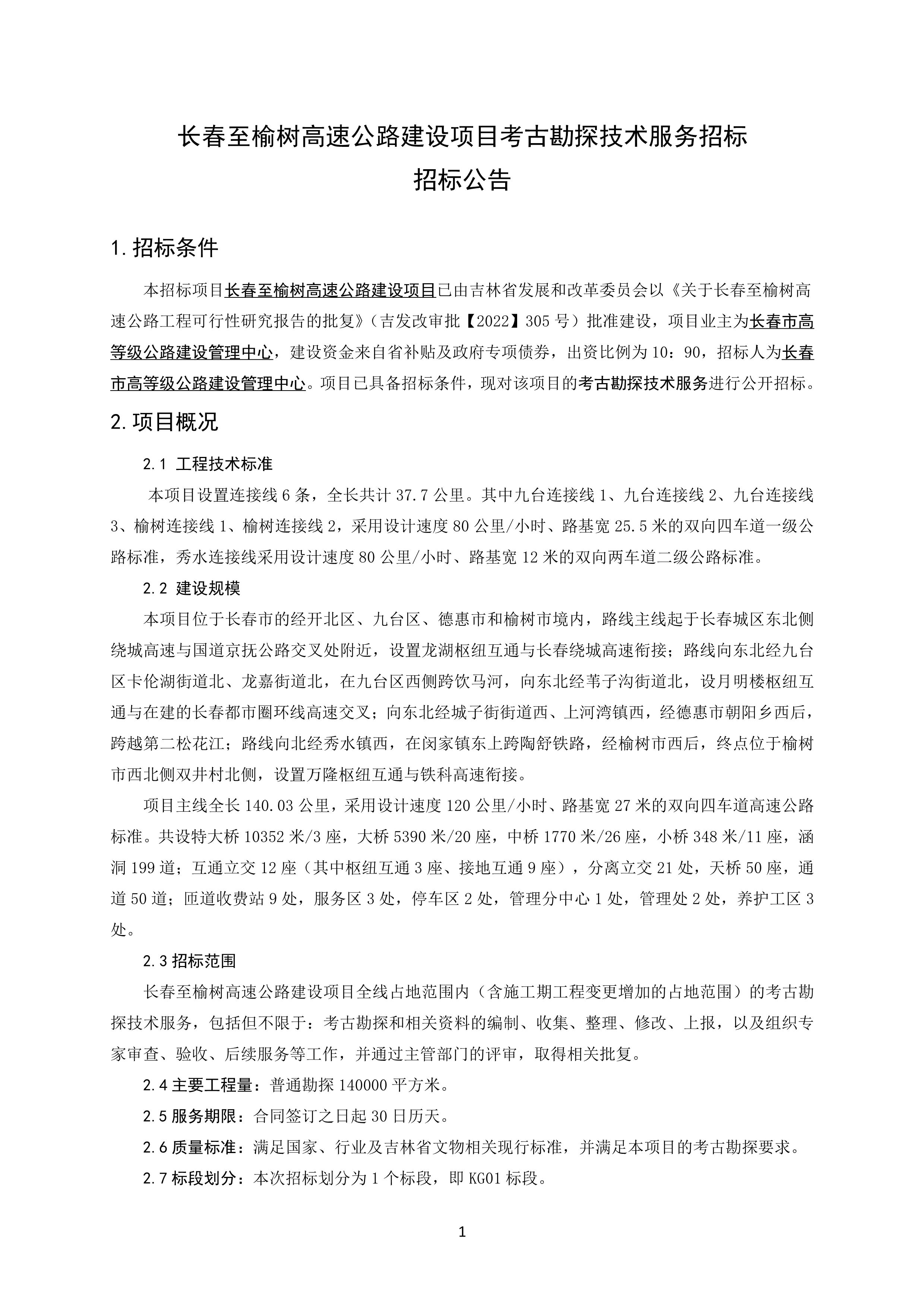 长春至榆树高速公路建设项目考古勘探技术服务招标招标公告.pdf