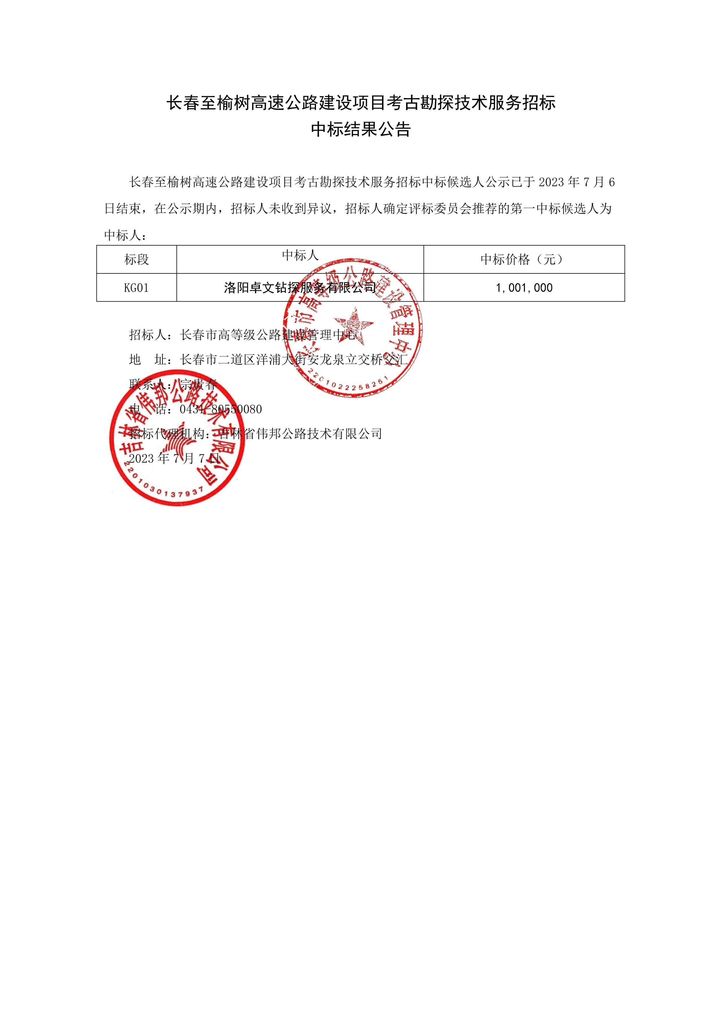 长春至榆树高速公路建设项目考古勘探技术服务招标中标结果公告.pdf