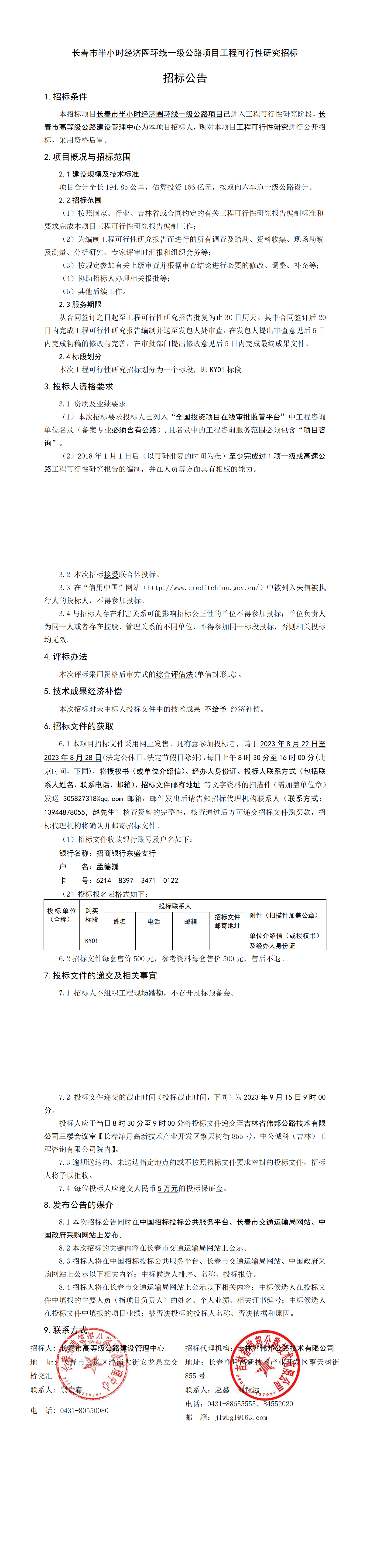 长春市半小时经济圈环线一级公路项目工程可行性研究招标文件关键内容信息公开.pdf