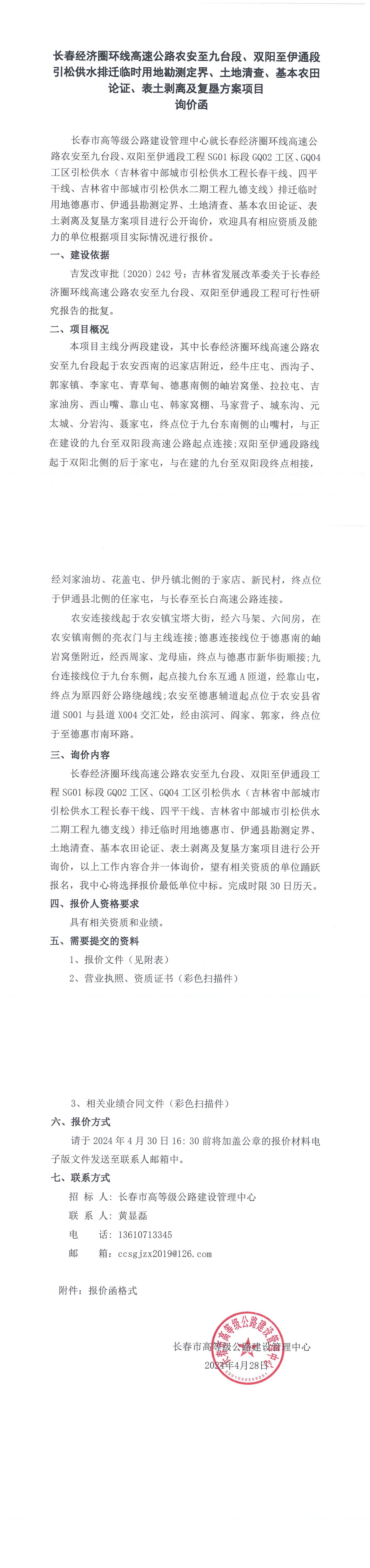 长春经济圈环线高速公路农安至九台段、双阳至伊通段引松供水排迁临时用地勘测定界、土地