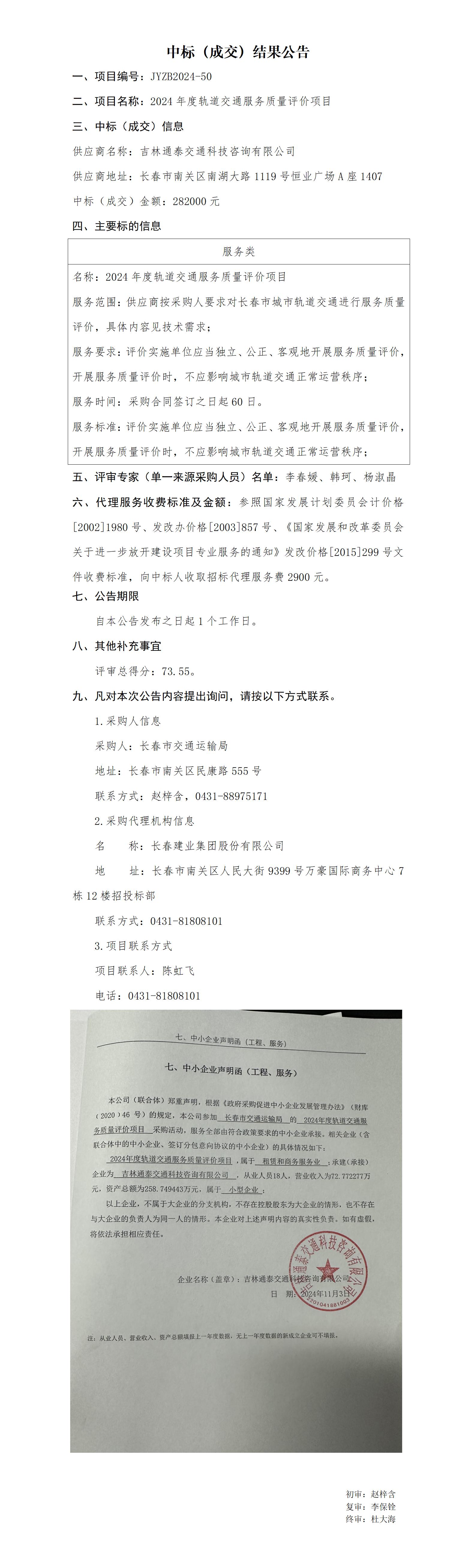 2024年度轨道交通服务质量评价项目中标结果公告