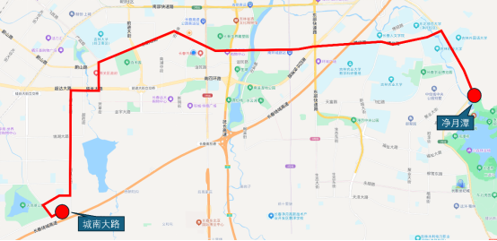 线路由净月潭公园正门始发,途经净月大街、博学路、南环城路、超凡大街,终到城南大路,可与77路,轨道1、3、4、6号线衔接,全程25公里,配车35台,首末车时间5:30-21:40,车隔5-10分钟。