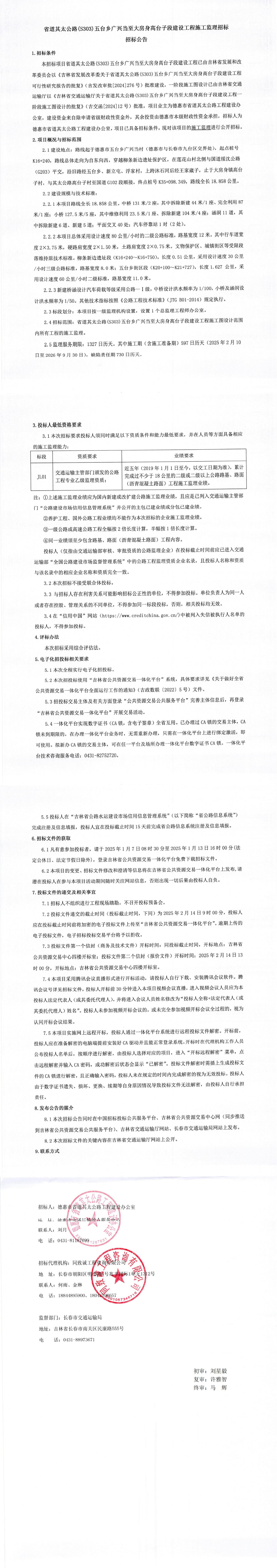 省道其太公路(S303)五台乡广兴当至大房身高台子段建设工程施工监理招标招标公告