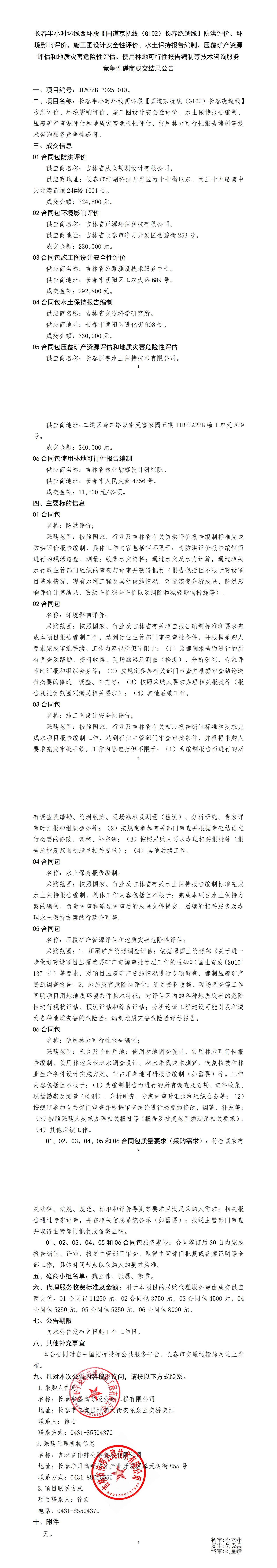 长春半小时环线西环段【国道京抚线(G102)长春绕越线】防洪评价、环境影响评价、施工图设计安全性评价、水土保持报告编制、压覆矿产资源评估和地质灾害危险性评估、等技术咨询服务竞争性磋商成交结果公告