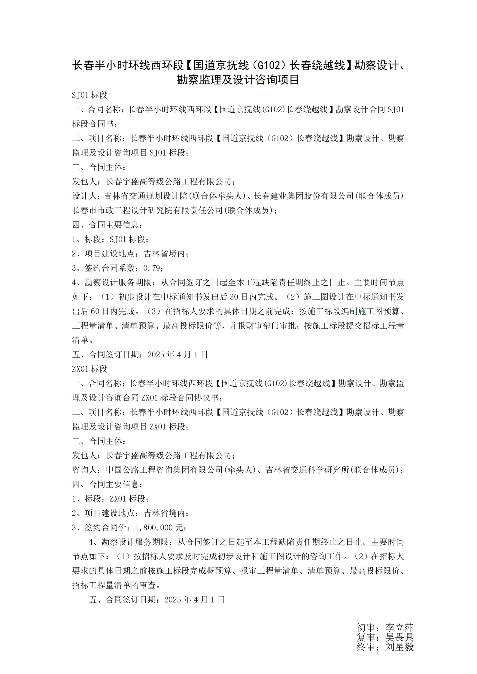 长春半小时环线西环段【国道京抚线(G102)长春绕越线】勘察设计勘察监理及设计咨询项目