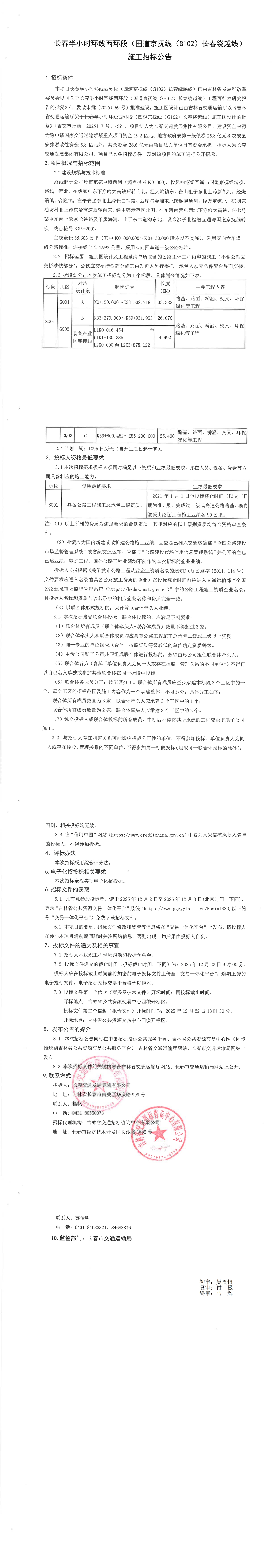 长春半小时环线西环段(国道京抚线(G102)长春绕越线)施工招标文件关键内容.pdf