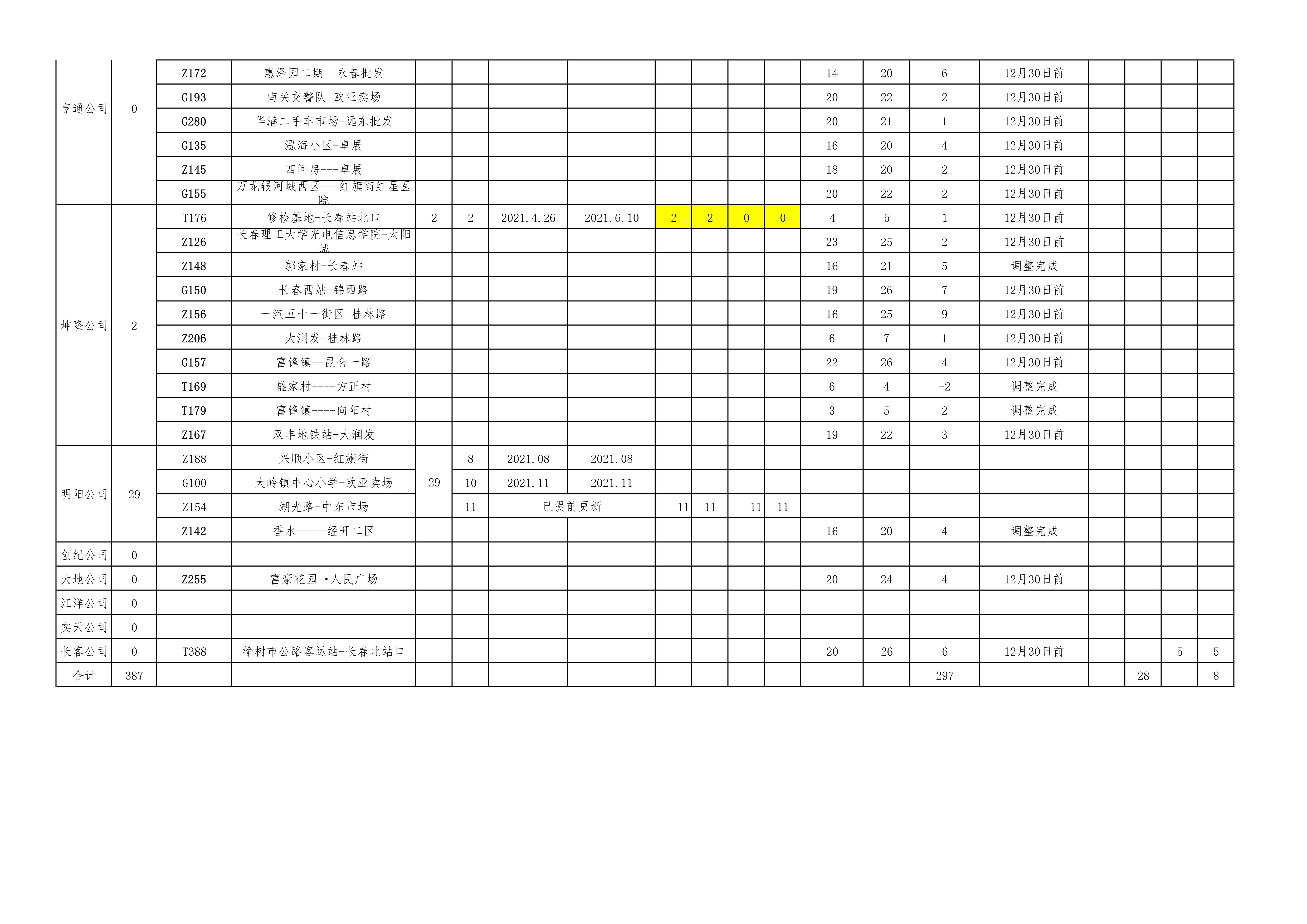随着新的线网规划逐步落地,2021年全市计划新增公交车297台,更新387台,至年末全市营运公交车将达到4118台,对比2020年同期,将增加297台。截至目前应完成更新246台,新增161台。实际完成更新106台,新增161台。另有计划外新增8台,更新28台。未按计划完成更新任务的企业是:长春市坤隆客运有限公司2台,长春公共交通(集团)有限公司138台。预计2021年6月末,上述企业将按计划完成更新任务。