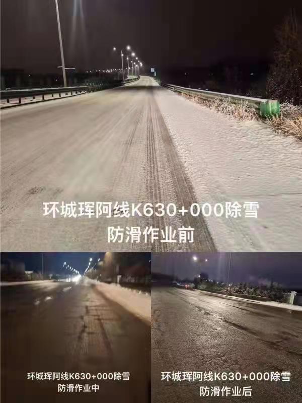 在国省干线公路除雪防滑和保通保畅方面,11月6日午至7日晚降雪以来,绕城高速、G102京抚线、G302珲阿线、G334龙东线、S102长双线等国省干线公路降雪平均厚度约10厘米,最深厚度可达26厘米,组织市公路管理处、环城段、绕城高速全体职工全员在岗24小时值守,提前做好清雪车辆检修、融雪剂及防滑料储备、除雪工具配备等工作,及时关注天气预报等信息,加强每日路面巡查,实时掌握路面情况,以雪为令,采取人工配合机械除雪、撒布融雪剂、在急弯陡坡等重点路段撒布防滑料等方式开展除雪工作,确保国省干线公路畅通。截止11月8日7时,共出动除雪防滑人员1075人次、各类机械146台班,撒布防滑料96立方米、融雪剂1543吨,累计除雪174029立方米,各国省干线公路未发生道路阻断或阻塞等情况。