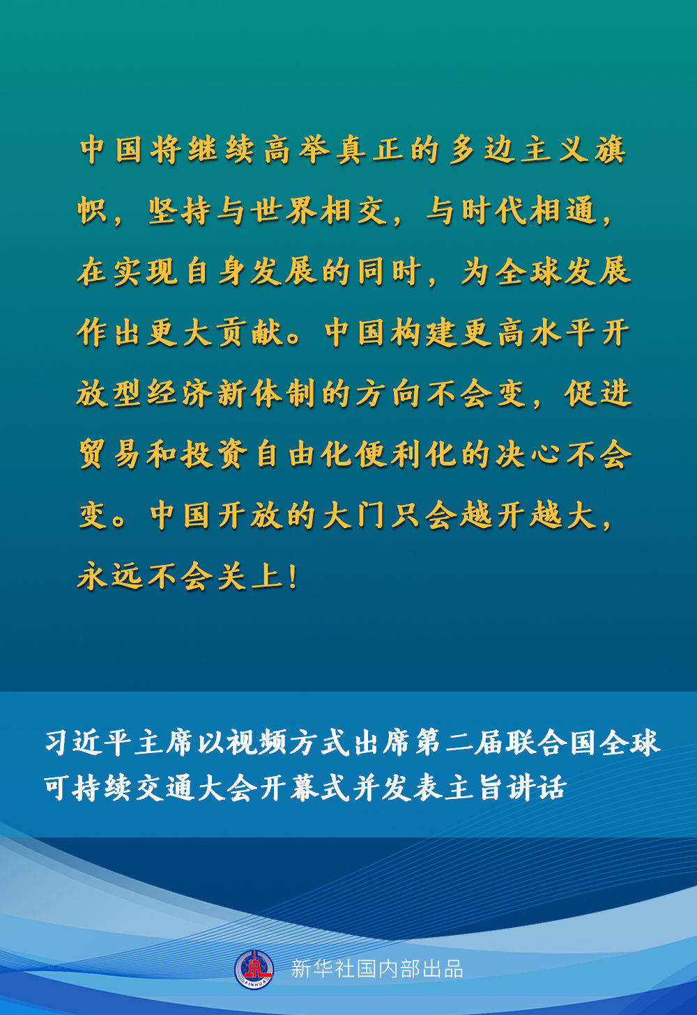 习近平在第二届联合国全球可持续交通大会开幕式上的主旨讲话要点速览