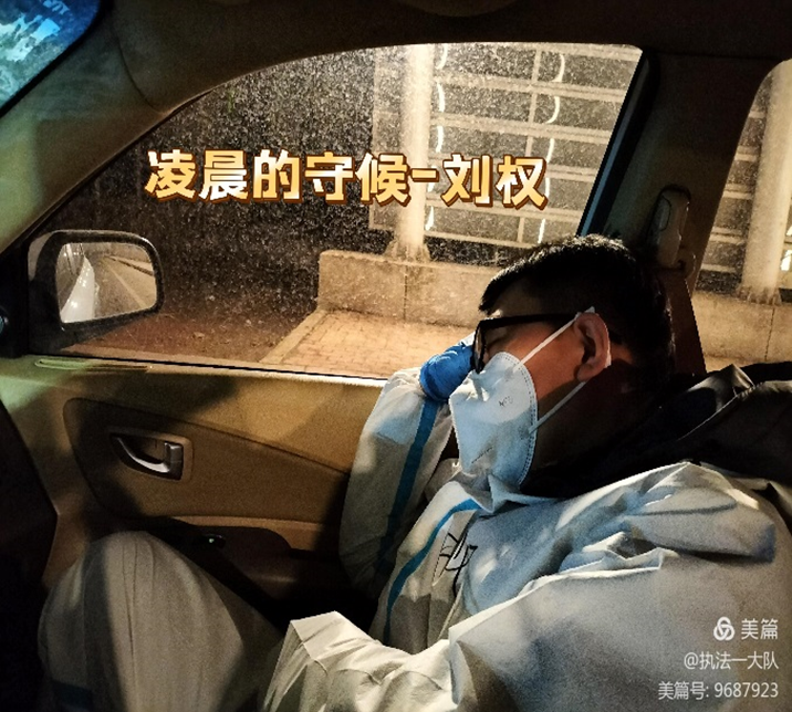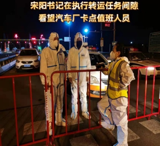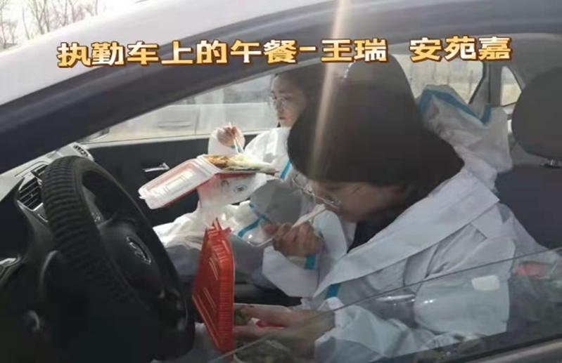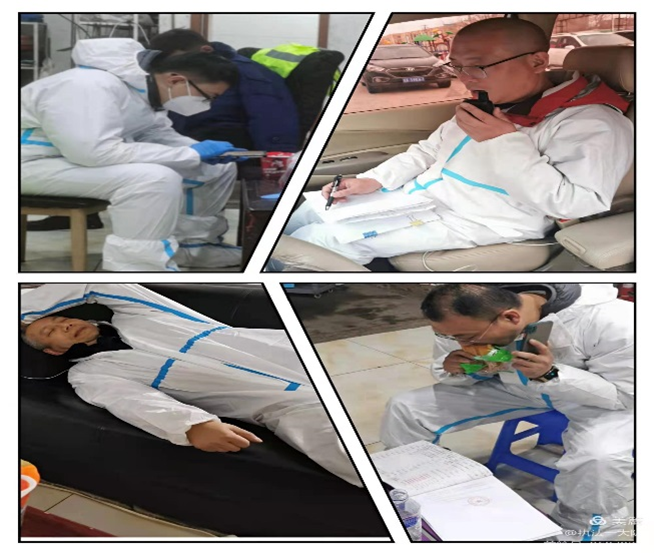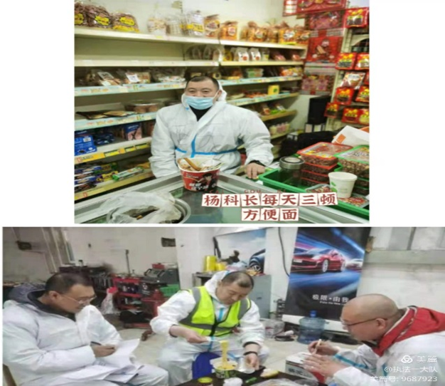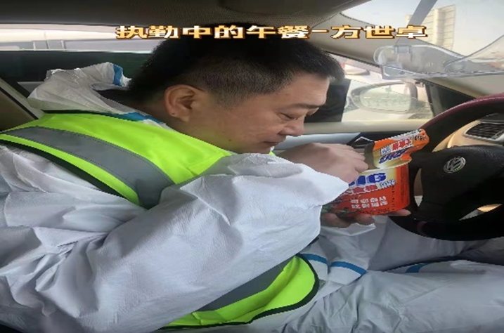 杨树立、刘权、齐冲等同志身兼数职,既有卡点执勤任务又负责转运车辆引导工作,他们日夜坚守,引导转运车辆到达指定位置;刘冰,李广军在小区解除隔离后,直接投入战斗;他们是前导员、卡点检查员也是后勤保障员……哪里有需要就到哪里,哪里有任务就出现在哪里,困了就在车里眯一会儿,电话或微信来了,就马上投入战斗!忙起来没有时间吃饭,错过了卡点供饭时间,方便面就成了他们的一日三餐,困难面前他们乐观向上,被称为交通战线“最可爱的人”!