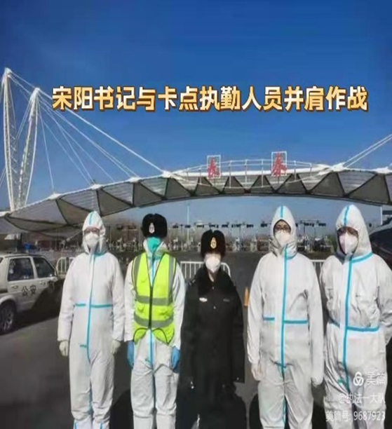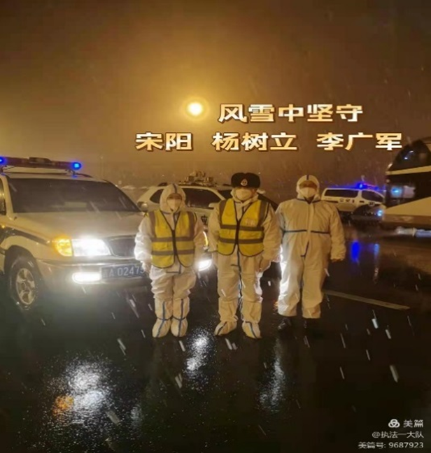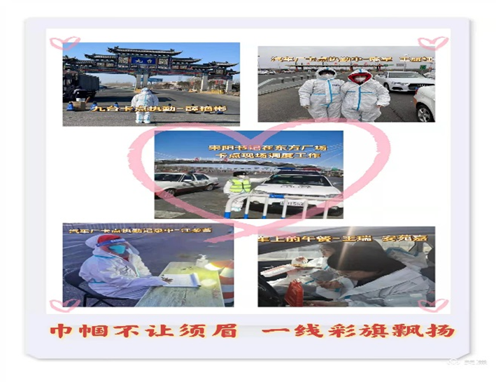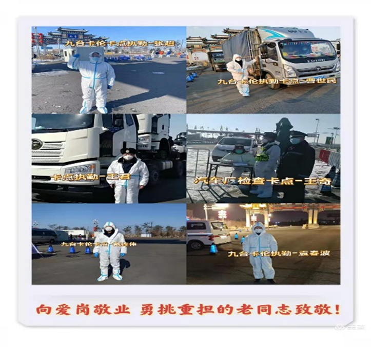 党支部书记宋阳同志刚解除隔离就带领同志们奔赴各执勤卡点,风雪中与同志们并肩作战,同时还担负九台人员转运车辆引导工作,每天夜里都是他们最忙碌的时候,完成最后一批人员转运,经常天都亮了!疲惫时想回家,又放心不下工作,与同志们一起在简陋的修配厂宿舍短暂休息后,又投入到新的任务中。当她看到同志们都很辛苦,就自己在网店购买水果慰问大家;看到卡点同志们用餐困难,每天吃方便面充饥,就积极沟通驻地单位保障大家用餐。她每天就是这样既亲自上卡点执勤又细心地关心照顾每名同志的食宿安排,被同志们亲切地称为“知心书记”!