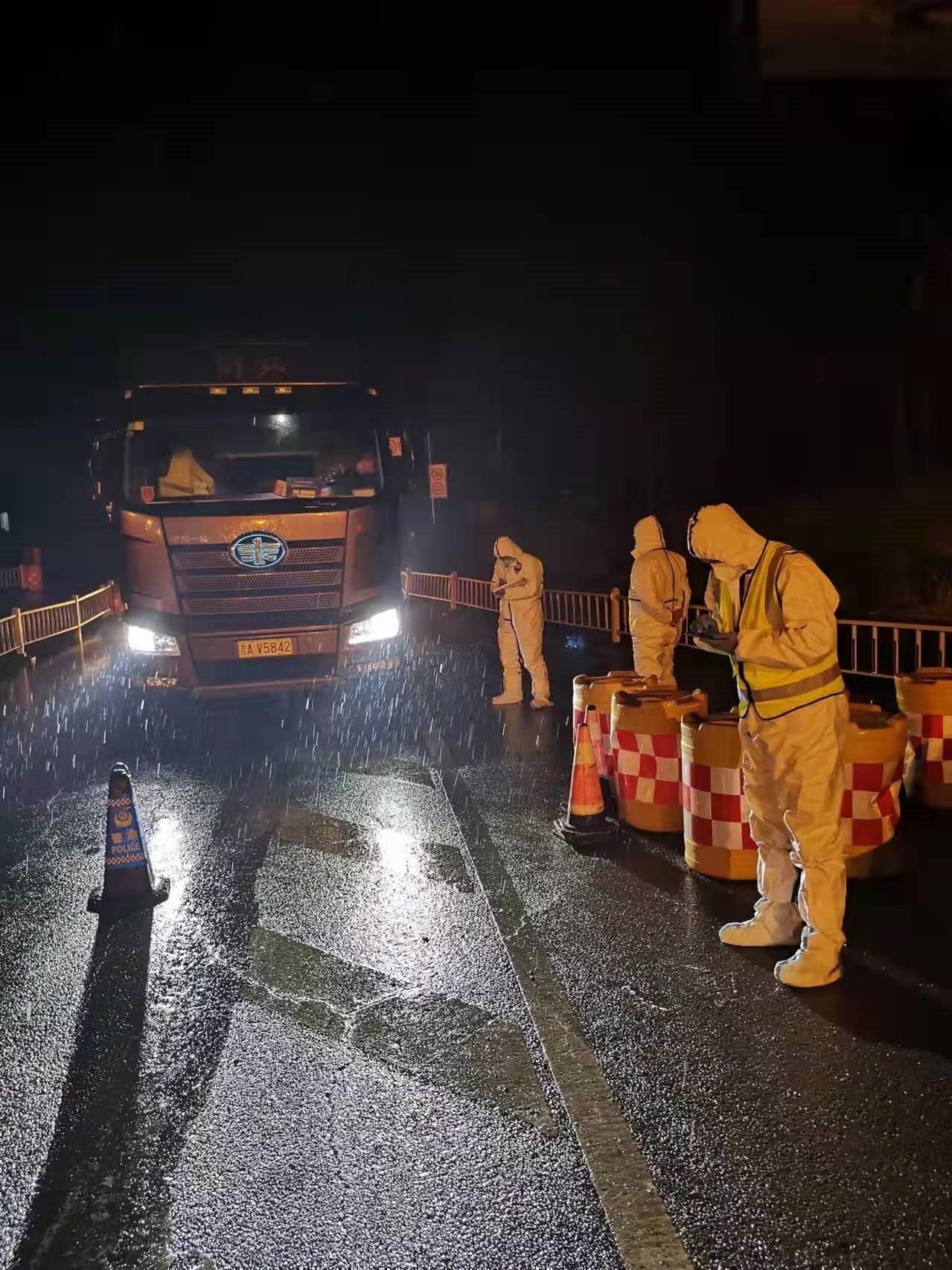 “我们的任务艰巨,但没有一个队员退缩。”李道明介绍,执法九大队负责的四家子卡点距离市区40多公里,莲花山高速口卡点距离市区30多公里,与吉林市、九台交界。长春东高速口卡点车流量大,是吉林、九台、飞机场进入市区的主要入口,警备路、合心卡点大多都是为汽车厂、客车厂配套运输车辆通行,每一处都尤为重要。“我们要对所有过往车辆进行登记,并做好查验通行证、核酸检测报告、个人疫情防控承诺书这些工作,丝毫不能大意。”李道明说,大队内许多职工或家在外地、或所在小区处于封控管理状态,不能参与防控工作,能上岗的执勤人员仅有18人,平均每个卡点每天执勤人员不足4人。“特殊时期、特殊管理,现在所有上岗的执勤人员全部驻站,各卡点实行滚动排班制。大家除了每天能换班睡会觉之外,没有任何休整时间,基本上都是睡醒就上岗。”李道明和队员们就是这样以站为家,相互扶持,完成了每一天卡点戒严管控任务。