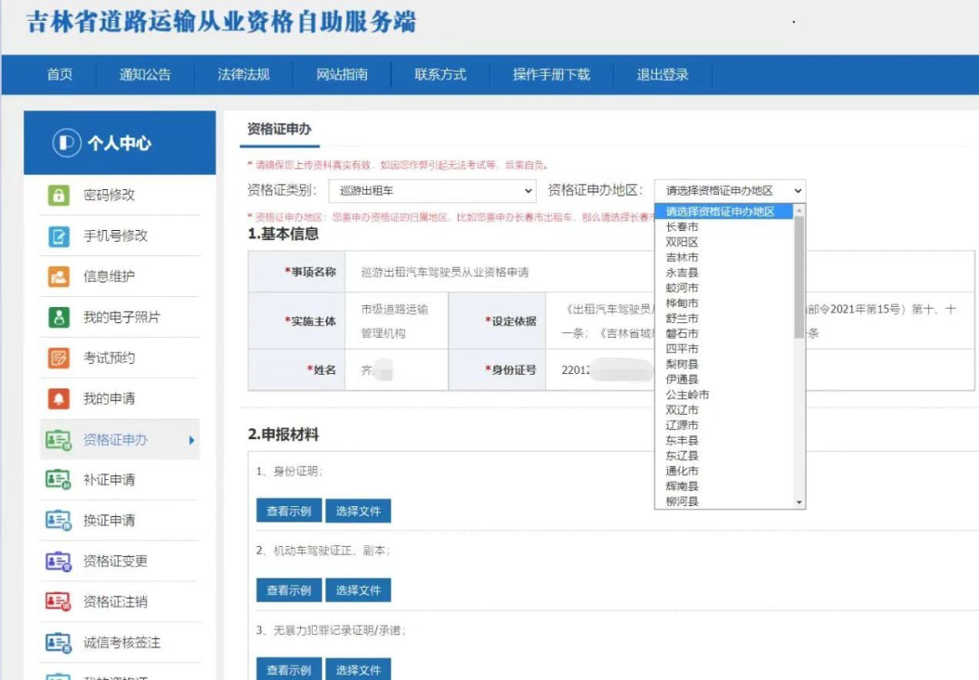第一步:网上报名。登录吉林省道路运输从业资格自助服务端,完成注册后进入个人中心,点击资格证申办,申请人可以选择资格证类别、资格证申办地区进行报名,及时上传申报材料,并在“我的申请”中查看审核通过情况。