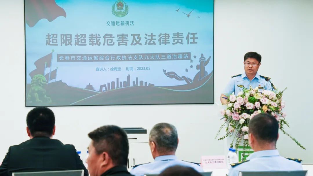 为营造第九个“路政宣传月”活动的良好氛围,按照“雷霆2023”专项行动部署,强化源头治理,遏制货运车辆违法超限超载运输,保障人民群众生命财产安全,5月29日,由长春市交通运输综合行政执法支队主办,长春晚报社承办的“全面治理超限超载”交通运输安全知识科普进企业活动在吉林鹏霖新型建材科技有限公司举行。活动中,长春市交通运输综合行政执法支队九大队向辖区各货运源头企业开展了一次紧贴实际的安全生产专题宣讲,引导重点源头企业合法装载。