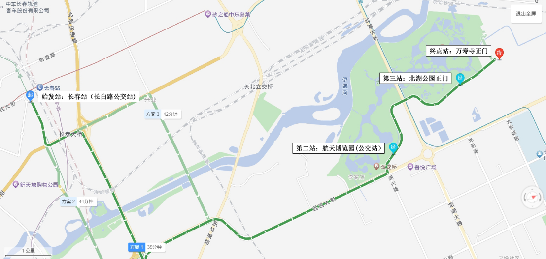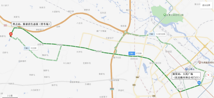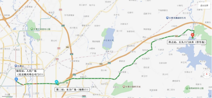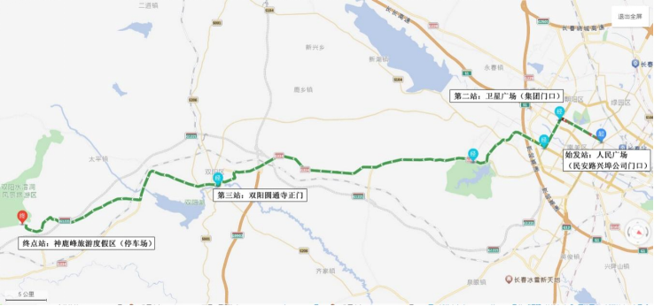 人民大街-卫星路-生态大街-福祉大路-净月大街-长清公路-双阳北山路圆通寺-神鹿峰 |