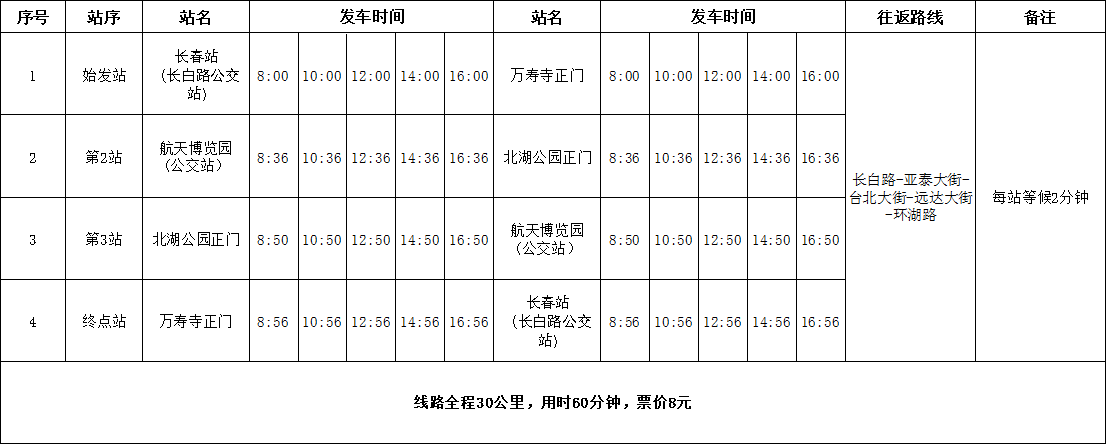 为进一步提升长春市文旅产业发展,保障市民和游客前往商圈和景区交通出行需求,市交通运输和文旅部门围绕市内商圈和外围景区,计划开通11条旅游定制公交线路,5月1日正式试运营,其中市内至外围景区9条,分别为乐山镇、石头口门水库、莲花岛影视基地、神鹿峰、国信南山、陈家店生态园、天定山、天怡温泉、慢山里线路;市内串联商圈和景点线路2条,分别为市内文旅1号线(长影、这有山、桂林路、动植物园、伪满皇宫等)、市内文旅2号线(北湖公园、万寿寺)。