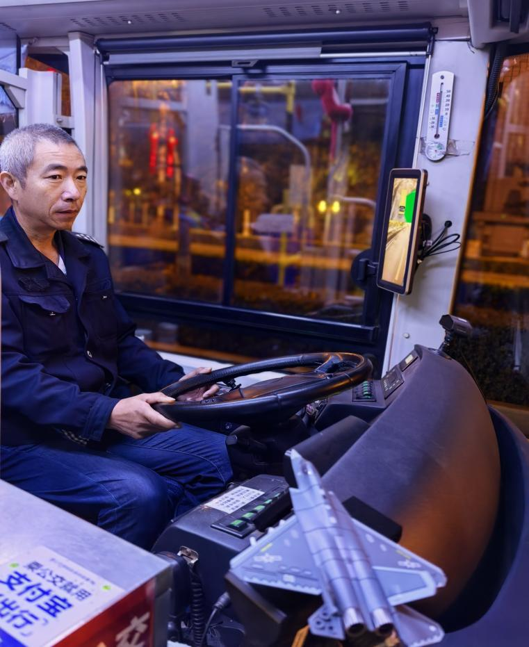 保障本届航空展的公交驾驶员陈华凌晨三点刚过就已到岗,执行发车前的安全检查与技术维护。在他打造的“逐梦长空”主题车厢内,蓝色喷绘、飞机模型和航天知识展板相得益彰,营造出浓厚的空天探索氛围。“希望八方乘客一上车就能感受到长春人的热情,提前沉浸到航展的热烈氛围中。”陈华面带微笑地说,“能通过本职工作为擦亮长春城市名片作贡献,作为一名交通人,我感到非常自豪。”