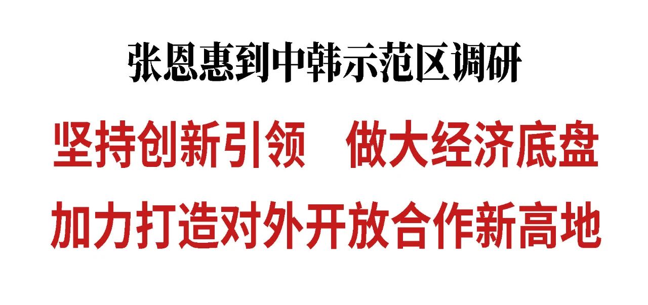 调研中,张恩惠强调,中韩示范区作为国家级开放平台,要找准定位和发力点,坚持以科技创新引领产业创新,大力发展氢能等新兴产业,夯实高质量发展根基。要坚持项目为王,加大招商引资力度,争取更多具有支撑性、标志性的大项目、好项目。要以改革为动力,向开放要活力,落实省市关于开发区改革的部署,探索建立更高水平的开放型经济新体制。要促进产城融合,做好文化、医疗、体育等设施配套服务,不断提高区域人口承载能力。