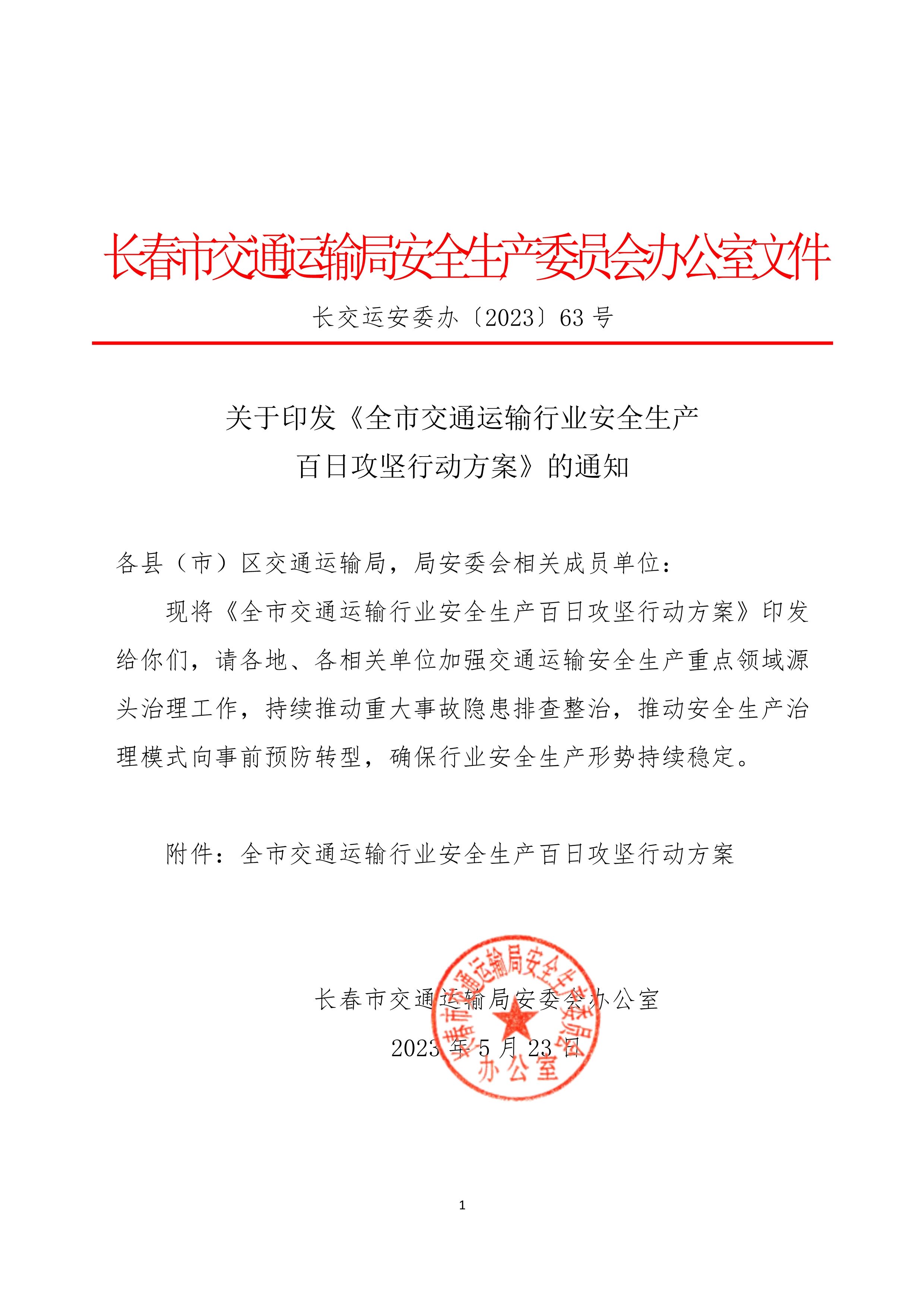 关于印发《全市交通运输行业安全生产百日攻坚行动方案》的通知
